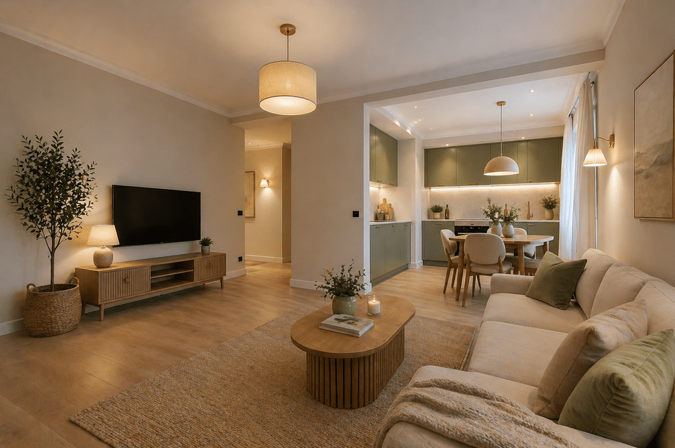 Divu guļamistabu dzīvoklis projektā HOFT ar apdari