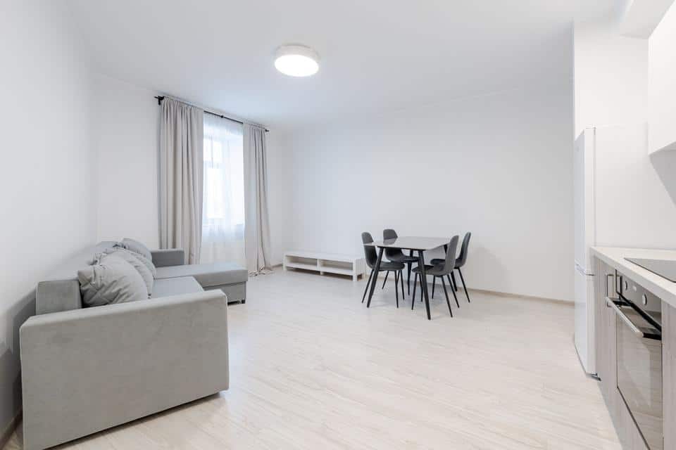 Jauns apartaments ar iebūvētu virtuvi, skapjiem un
