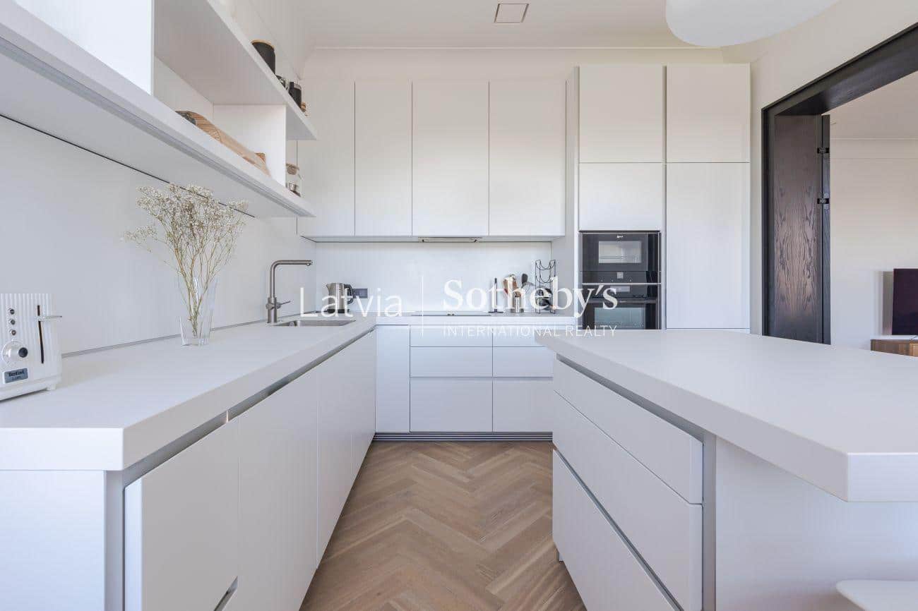 The apartment is offered with a full interior finish. The design is created in light tones with elegant accents: solid wood parquet flooring, installed ventilation system and air conditioners. Kitchen by Bulthaup with appliances by NEFF. Bathrooms are fitted with premium-class equipment and sanitary ware from Casa Di Vanna, Flaminia, and Cristina.
