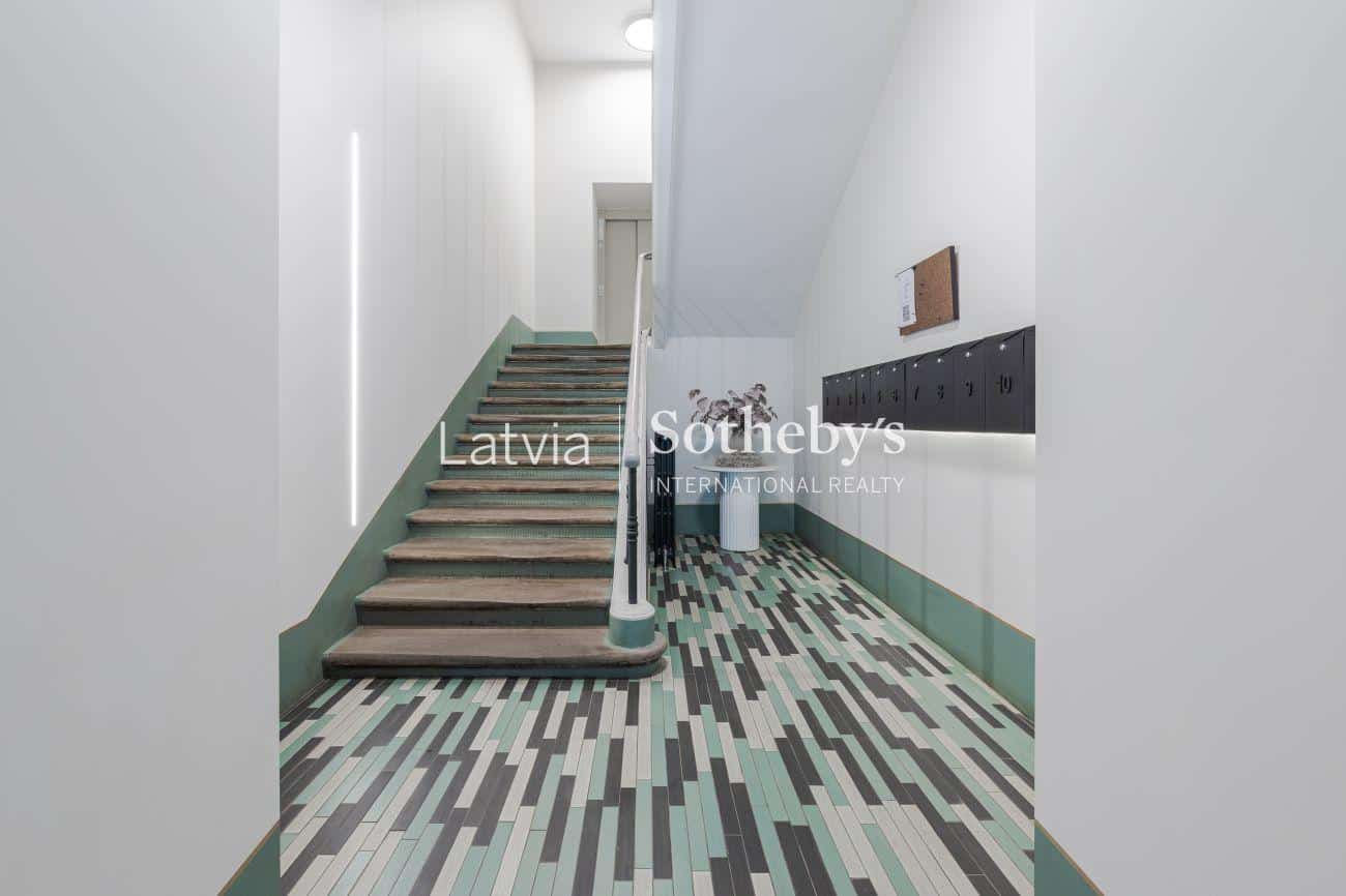 The apartment is located on the 5th floor of the building and overlooks the beautiful Vērmanes Garden Park.