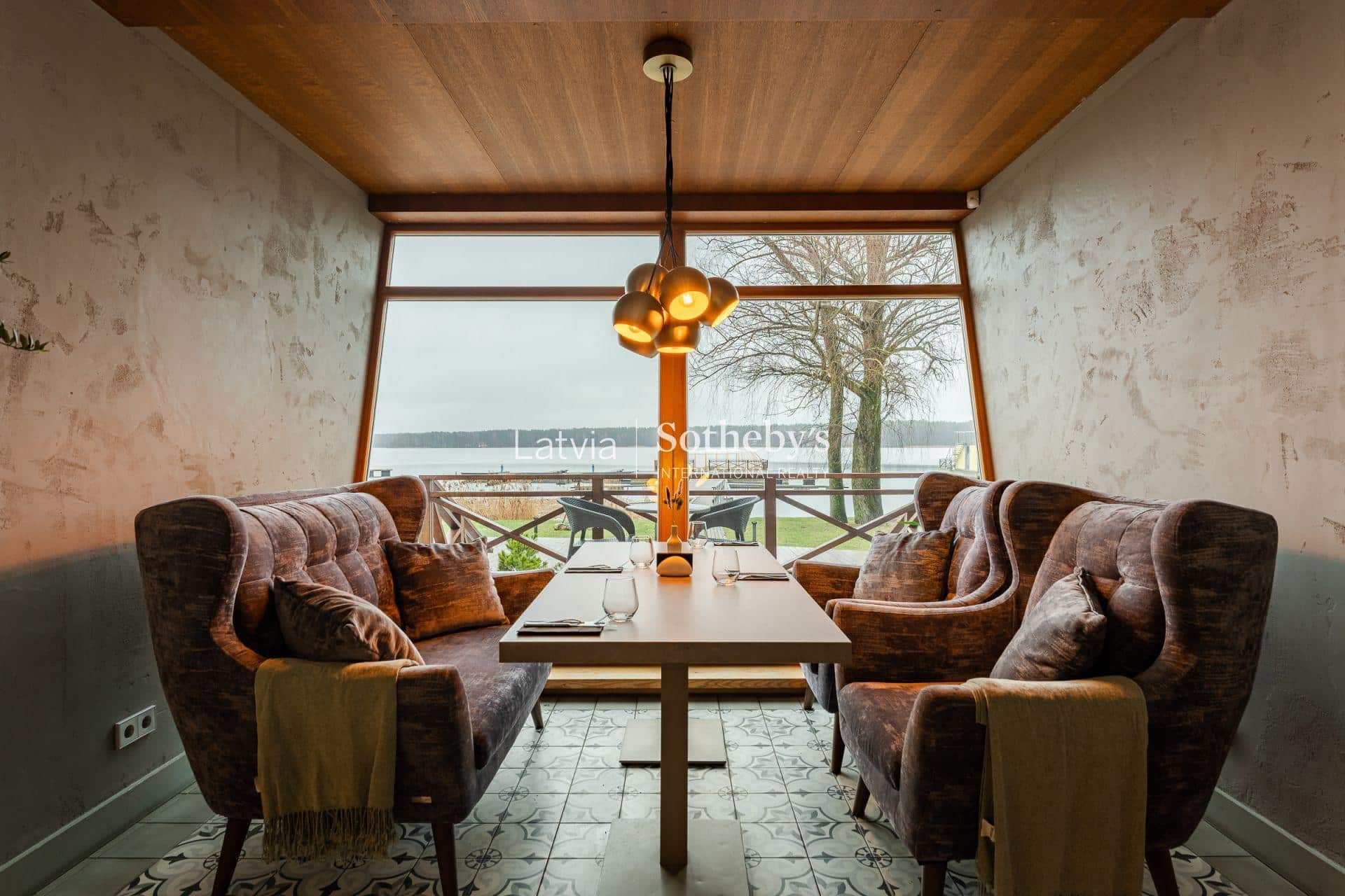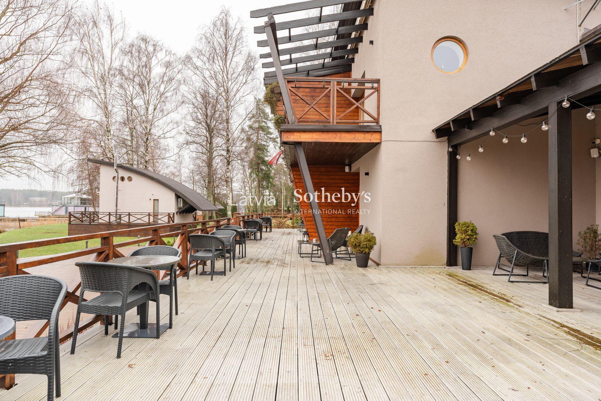A multifunctional property for sale on the shore of Lake Mazais Baltezers – a fully developed complex with accommodation, dining, and recreational infrastructure.