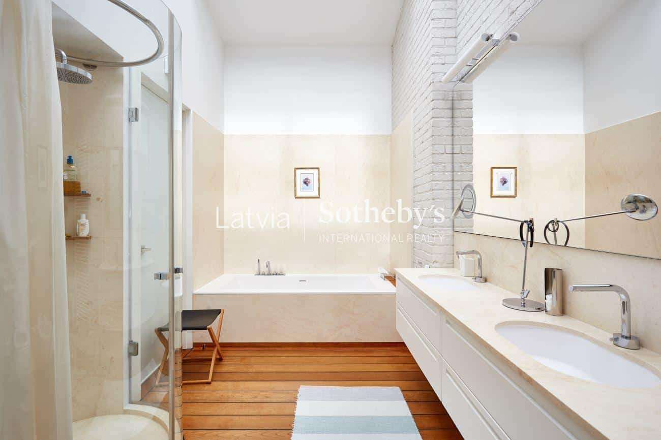 We offer for purchase elegant and modern 3 floor Villa in the residential project “Gypsum Factory II” and it is located on Kipsala Island, on the shores of the River Daugava, with breathtaking views of the historical part of Old Riga and only in a few minutes’ drive or a 15-minute walk to Old Town. The location provides silence and beautiful sights to the River, Old Town, ferries entering the port. “Gypsum Factory II” is a high-class design and architecture project. Touch of an elegance can be felt in every element of façade and in every interior object. Project has an inner garden courtyard. The Villa is located on the very shore of the River Daugava with an underground garage. A pier for resident motorboats and jet skis is located adjacent to the project. The spacious villa is offered with high – quality internal finish, including built-in kitchen with appliances, built-in wardrobes, exclusive lighting solutions and furnished bathrooms, equipped with individual heating and conditioning systems. The building complex has 24/7 security, an enclosed territory, installed video surveillance and a wide range of services for the resident comfort.