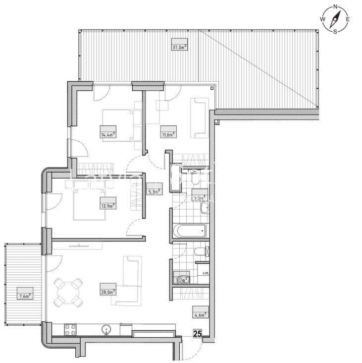 - 2 private terraces (7.60 m² and 37 m²) providing extra space and comfort.