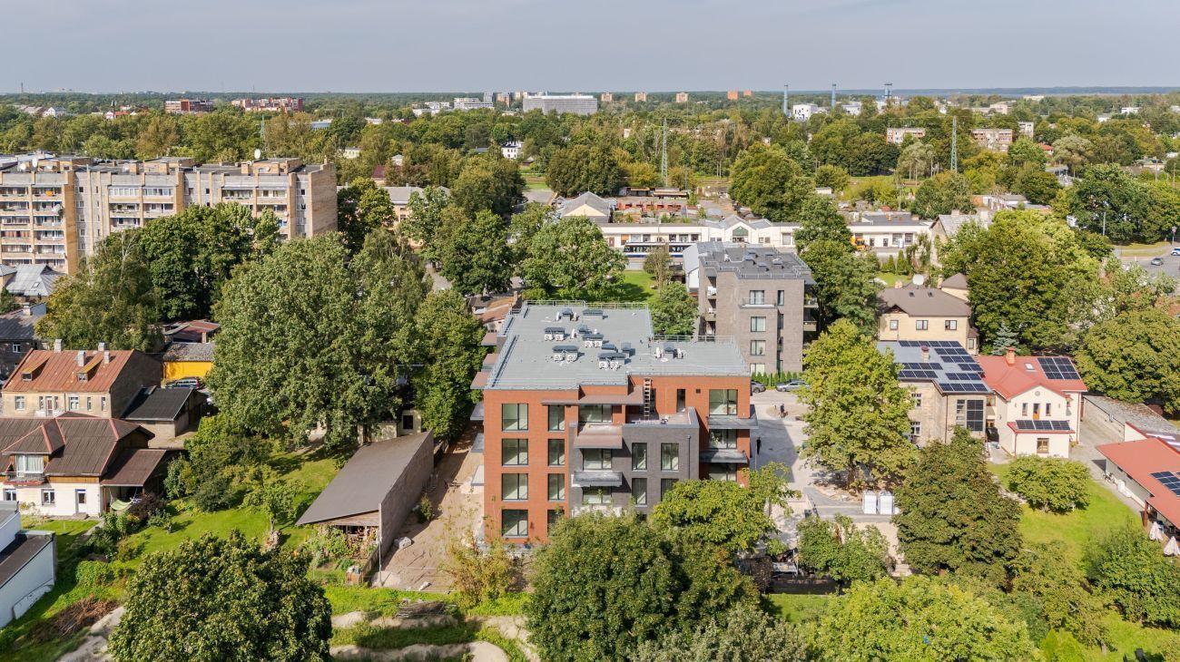 The property is located in a quiet and green area of Teika — between Brīvības and Ropažu Streets, just a few minutes from Akropole Alfa shopping center, schools, kindergartens, public transport, sports clubs, and Biķernieki Forest.