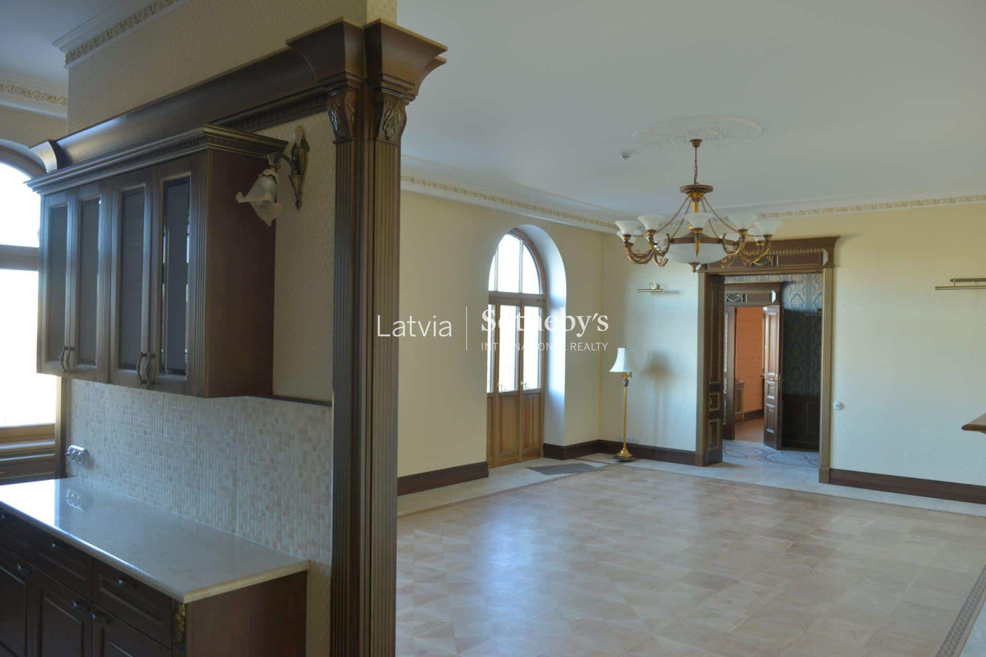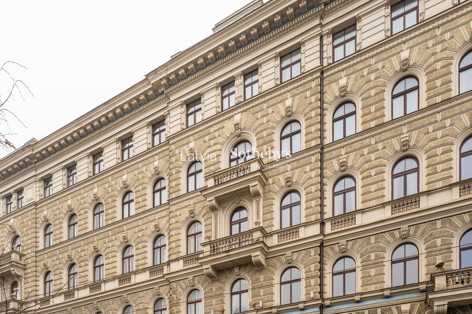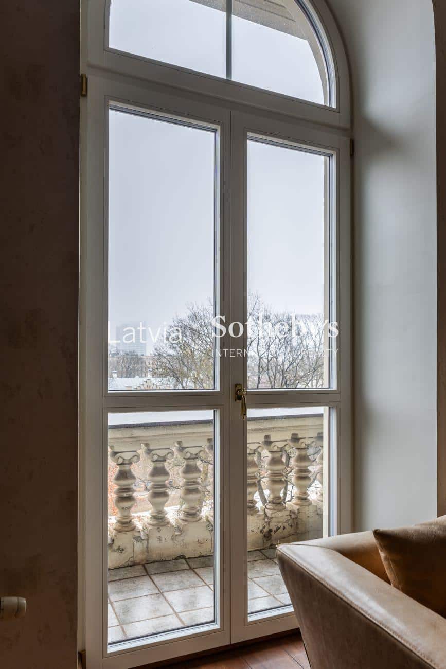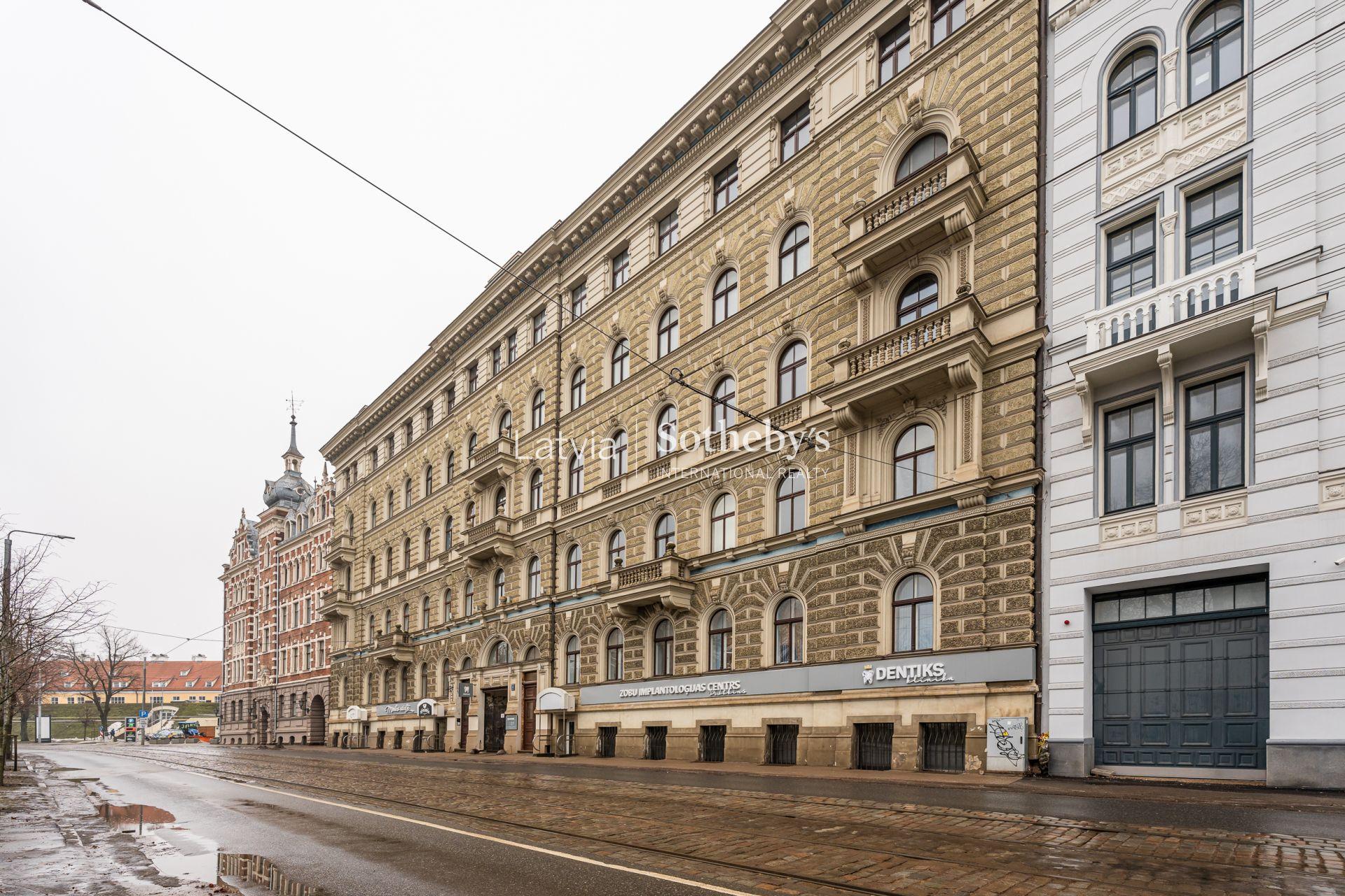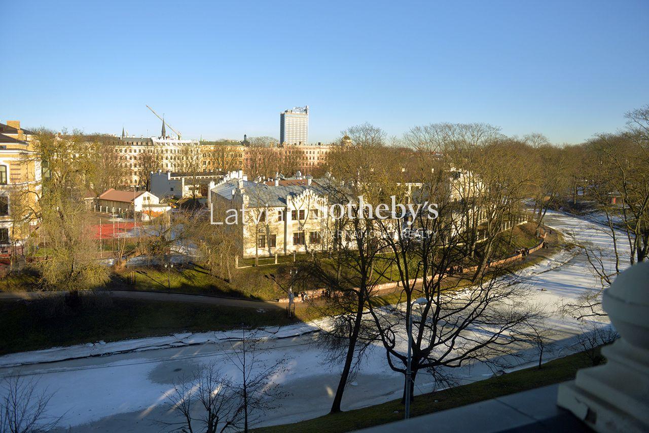 An elegant apartment with a view of Bastejkalns is for sale. This apartment offers an unparalleled view of the park and the city canal. The building is a pearl of 19th century eclecticism, the apartment has preserved original architectural elements.