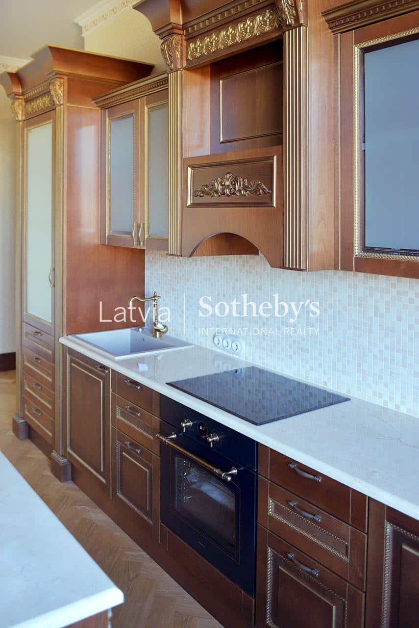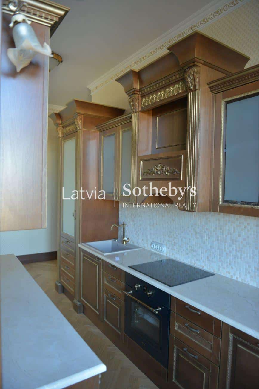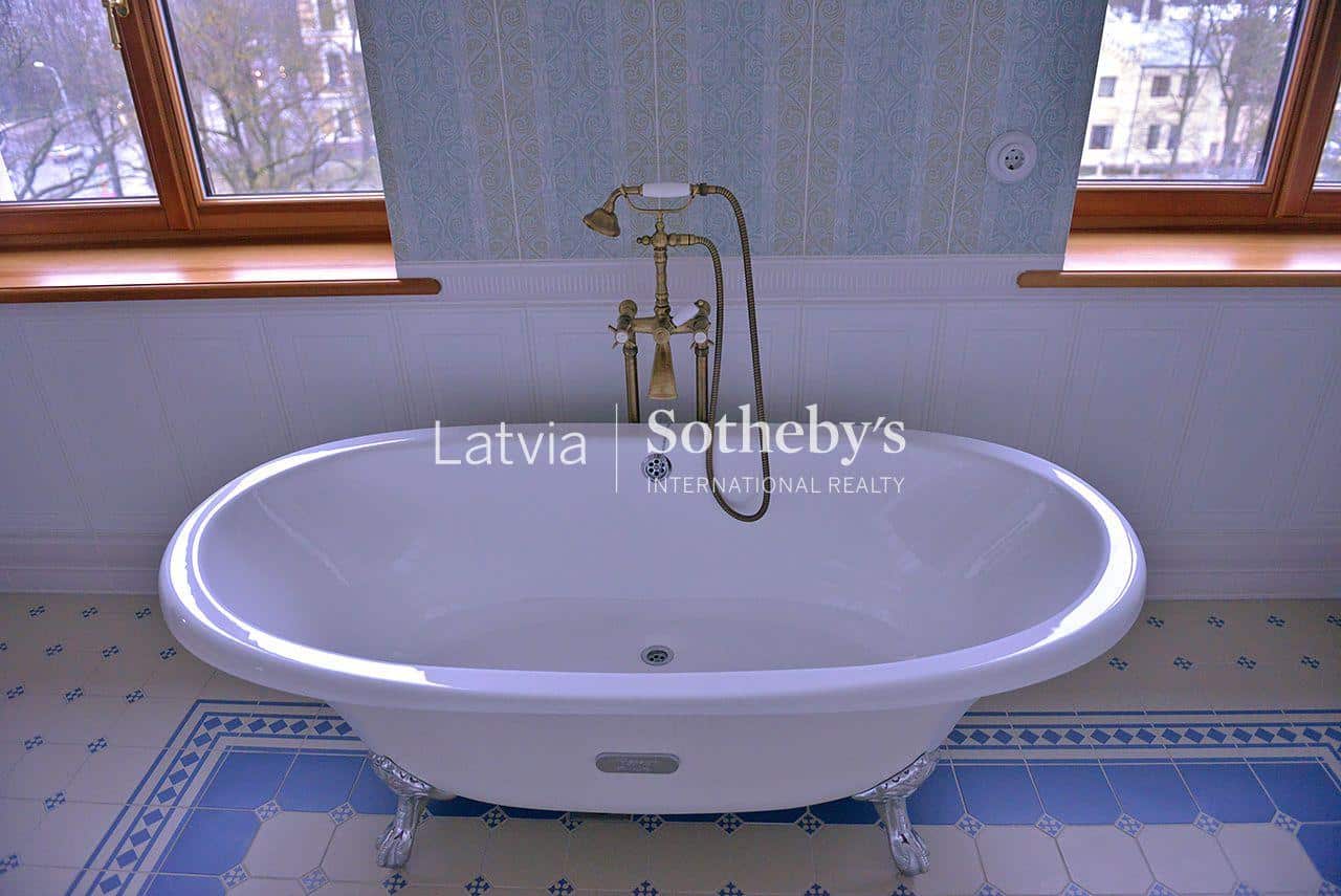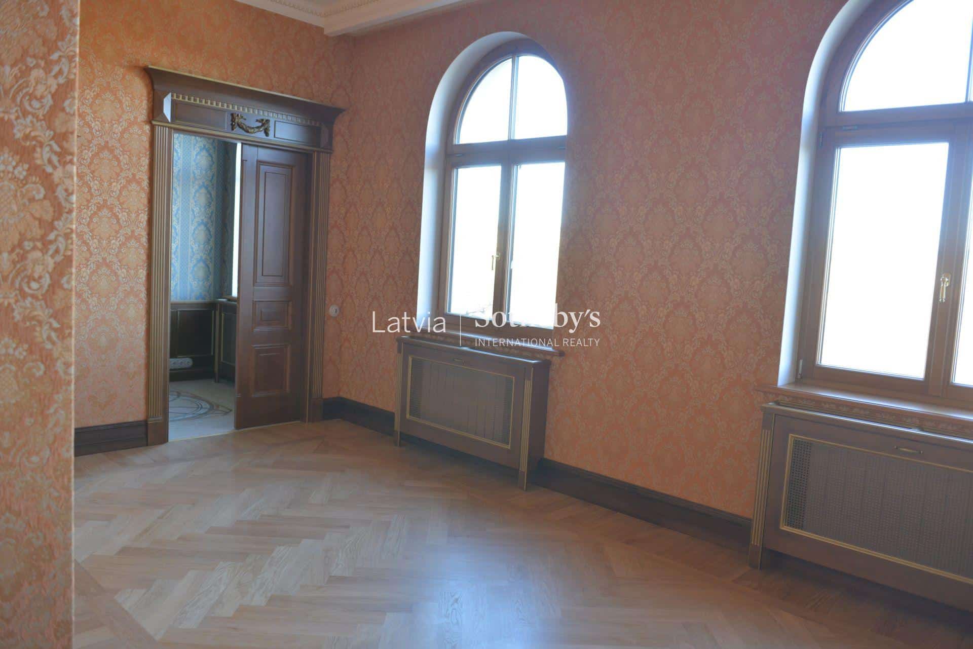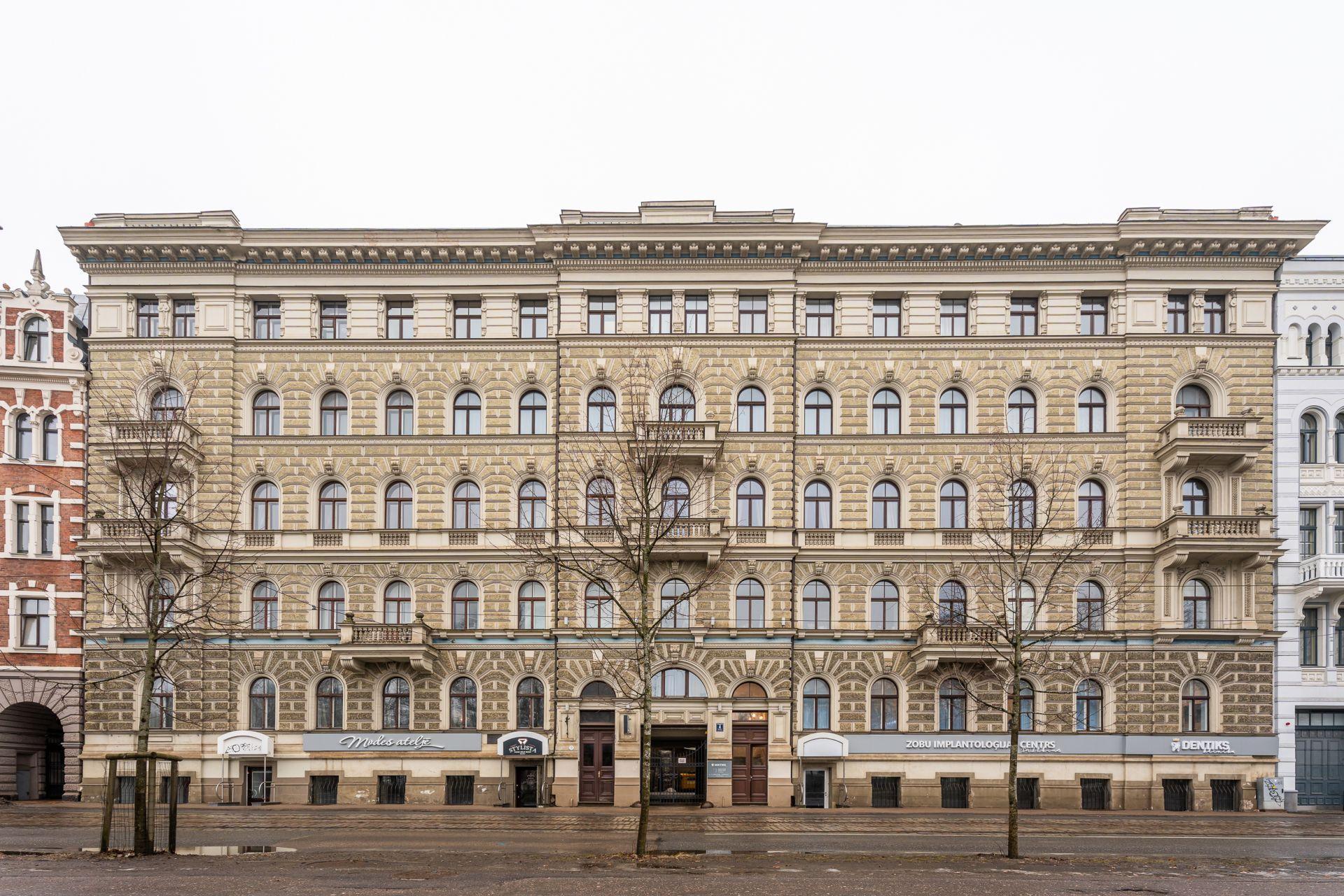 An elegant apartment with a view of Bastejkalns is for sale. This apartment offers an unparalleled view of the park and the city canal. The building is a pearl of 19th century eclecticism, the apartment has preserved original architectural elements.
