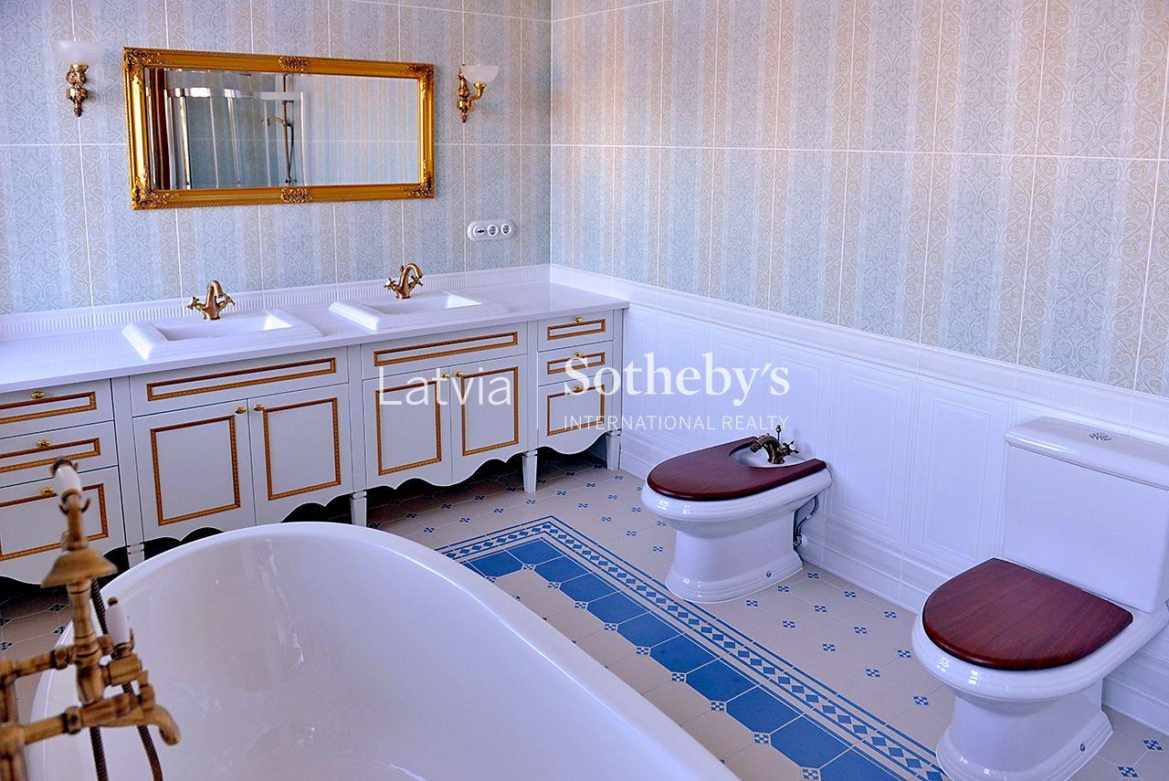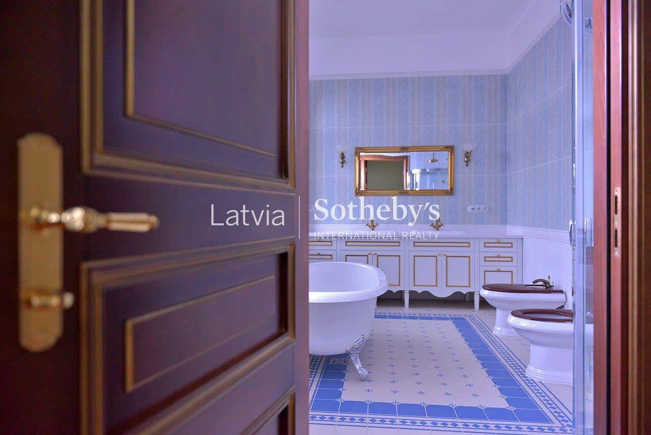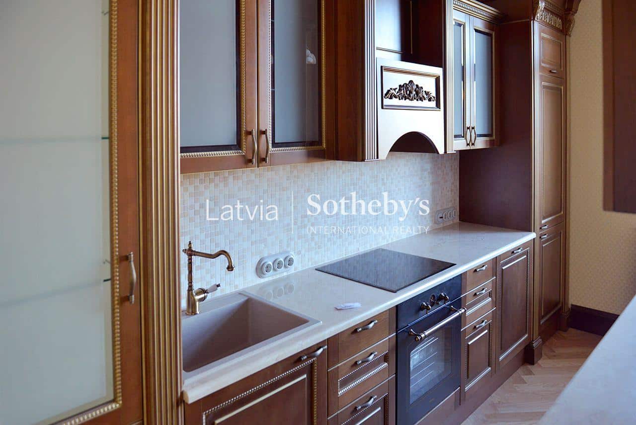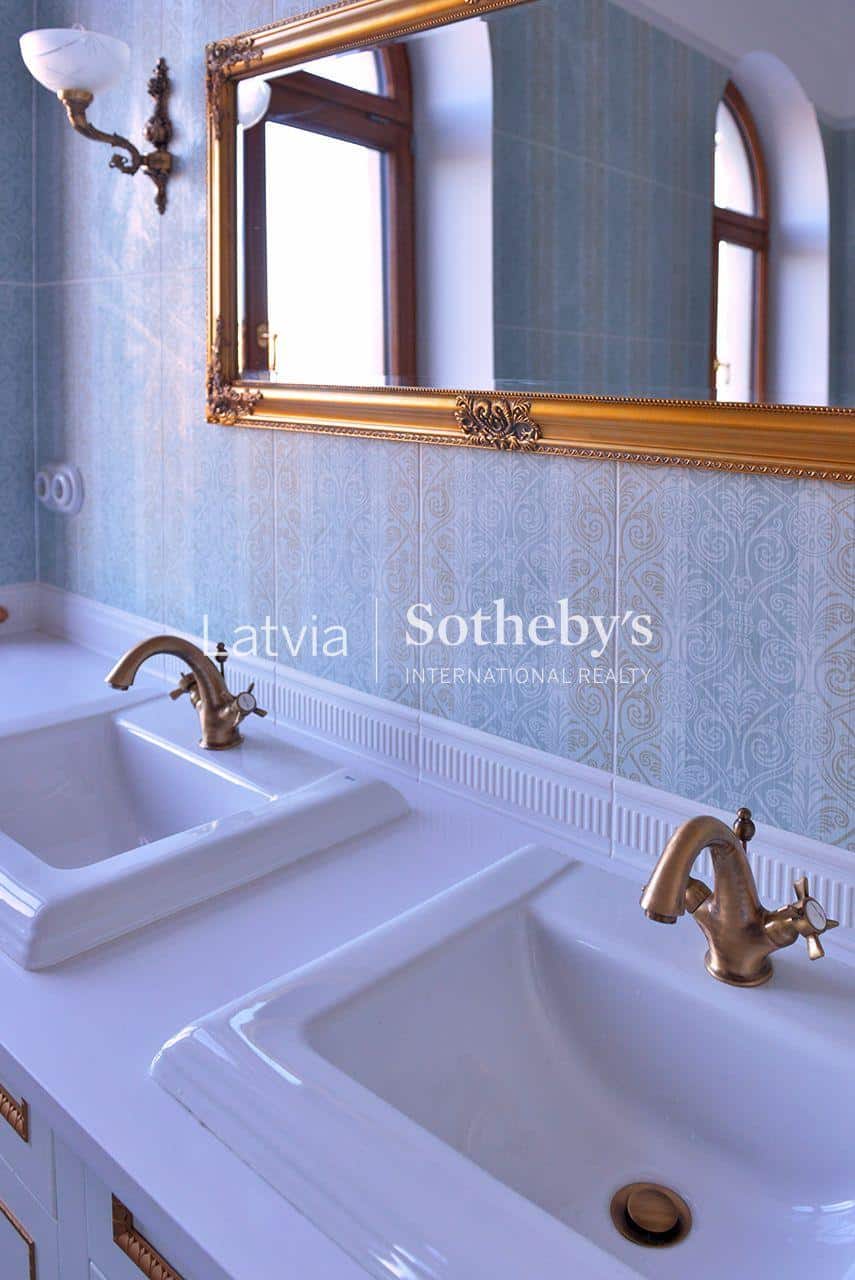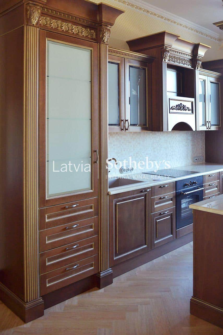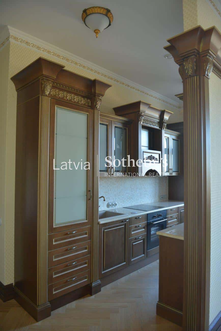 An elegant apartment with a view of Bastejkalns is for sale. This apartment offers an unparalleled view of the park and the city canal. The building is a pearl of 19th century eclecticism, the apartment has preserved original architectural elements.