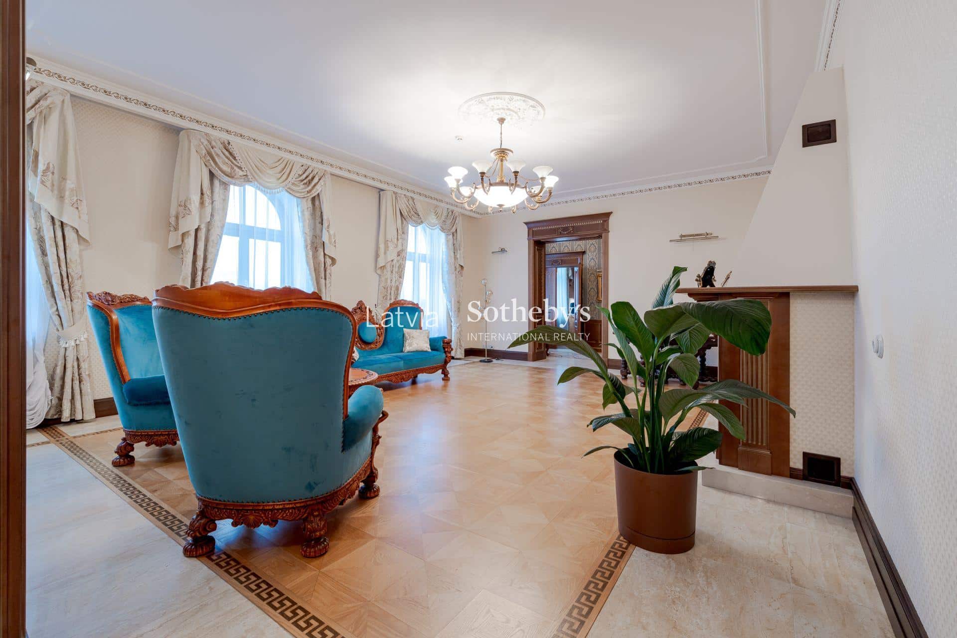 For sale: a unique and refined apartment offering an unparalleled view of Bastejkalns and the city canal. This is a rare opportunity to acquire a property in one of the most beautiful and serene locations in central Riga — a historic building from 1898, designed by architect J. D. Felsko. The building is a true 19th-century Eclecticism gem, and the apartment preserves authentic architectural and decorative elements.