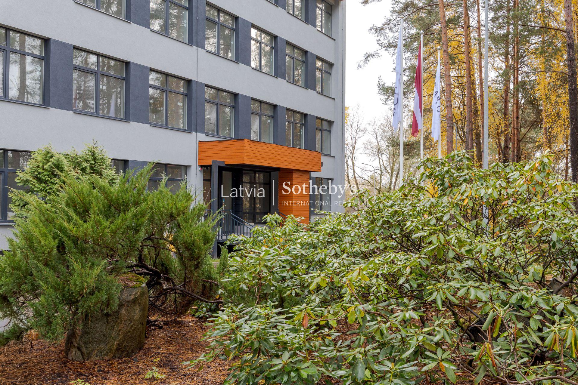 The area around the building has been thoughtfully landscaped with a private park, featuring illuminated walking paths, a pond with a gazebo, and a children’s playground. A public transport stop is located just a few minutes’ walk away.