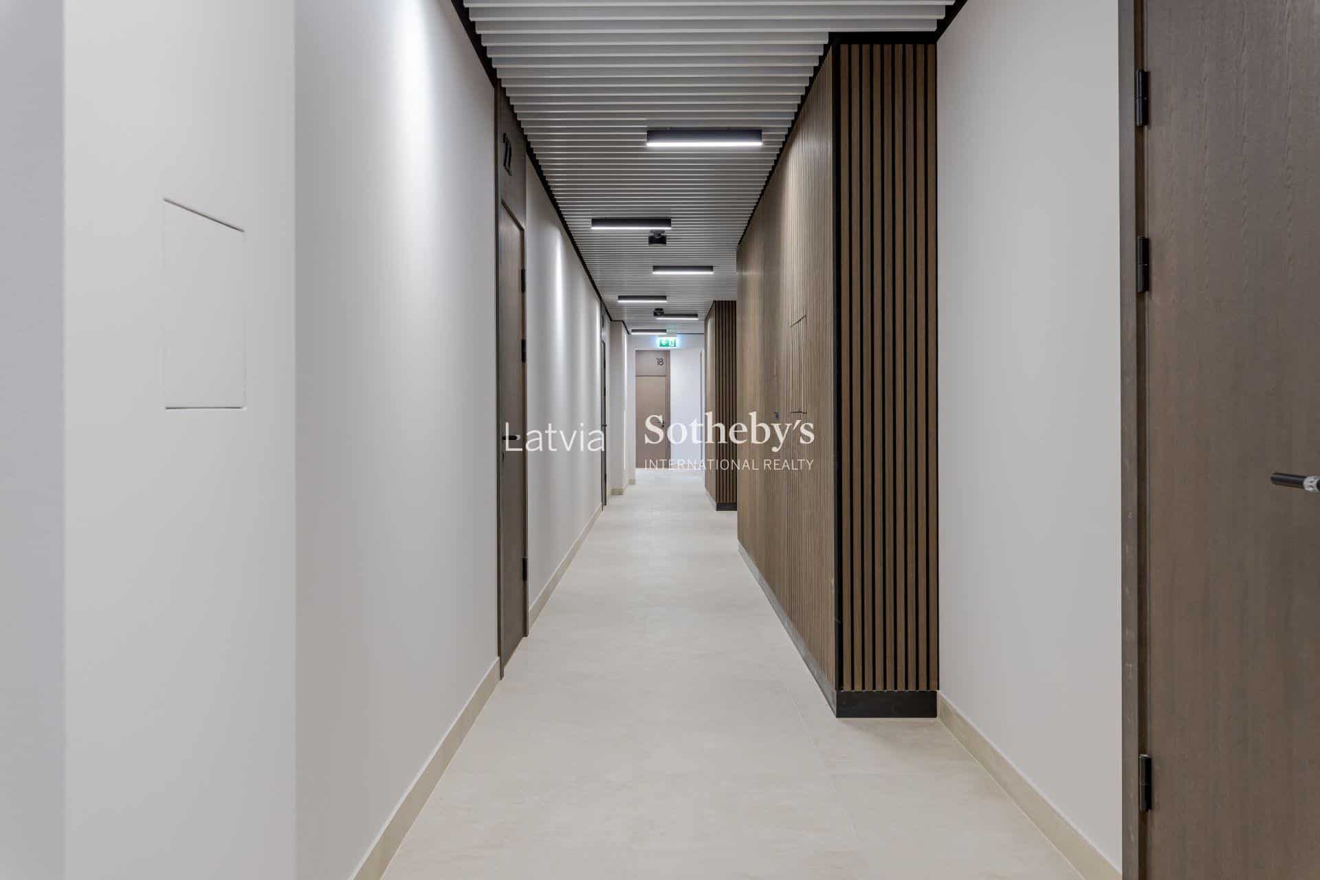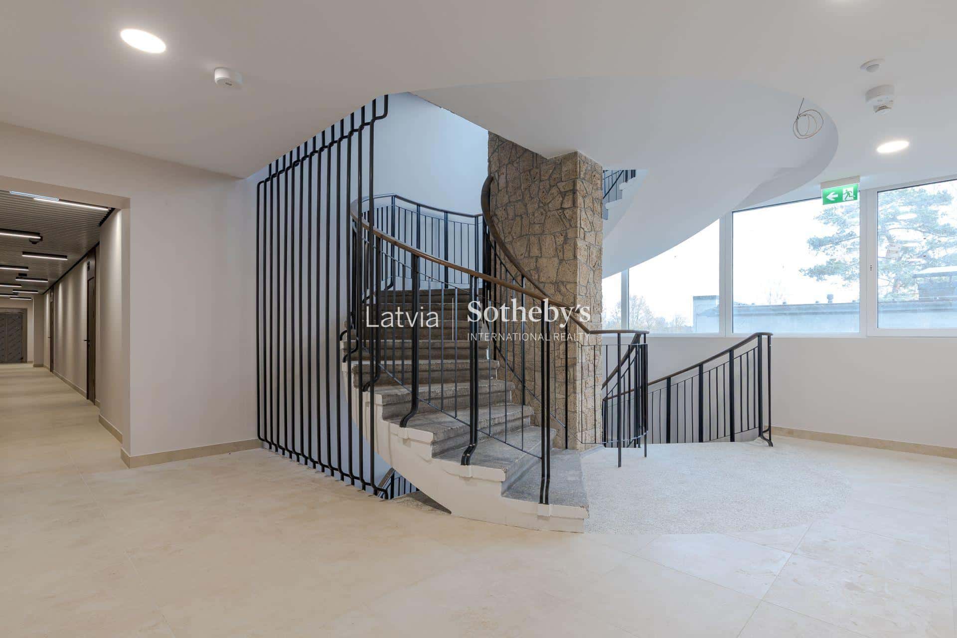 The area around the building has been thoughtfully landscaped with a private park, featuring illuminated walking paths, a pond with a gazebo, and a children’s playground. A public transport stop is located just a few minutes’ walk away.