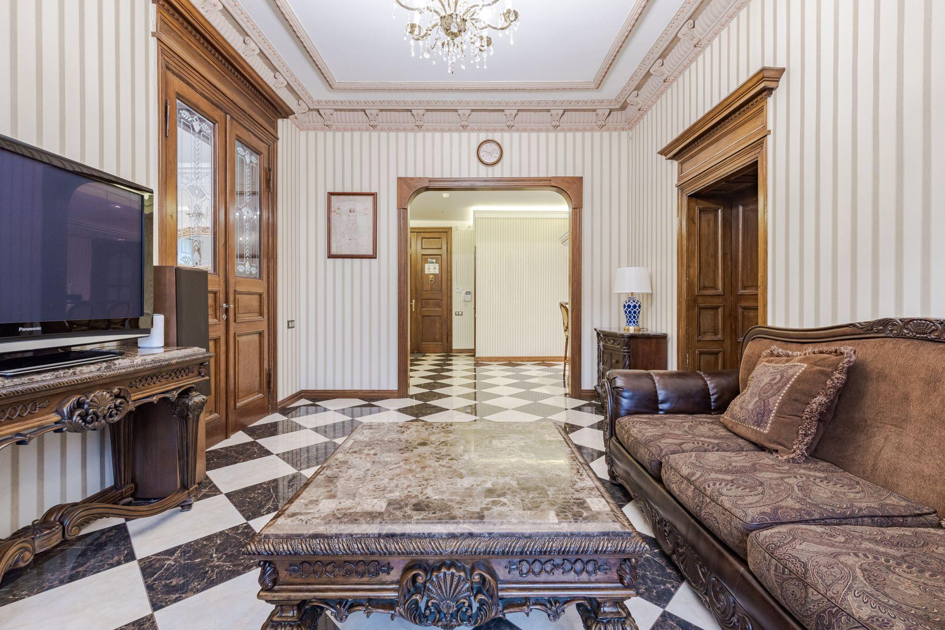 The property is complemented by individual gas heating, underfloor heating in the bathrooms, high-quality household appliances, and antique furniture that enriches the interior. Original ceiling decorations have been preserved and restored.