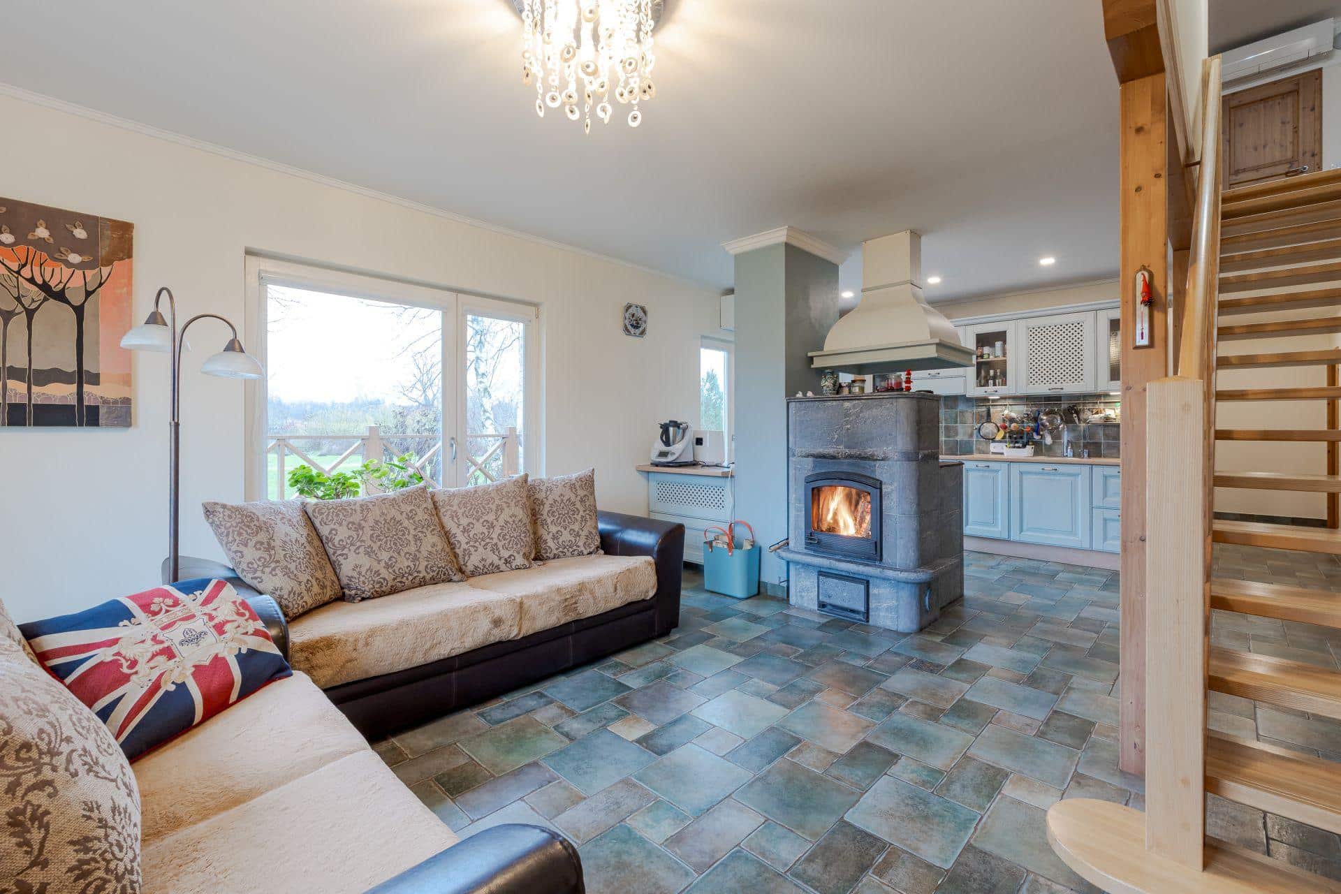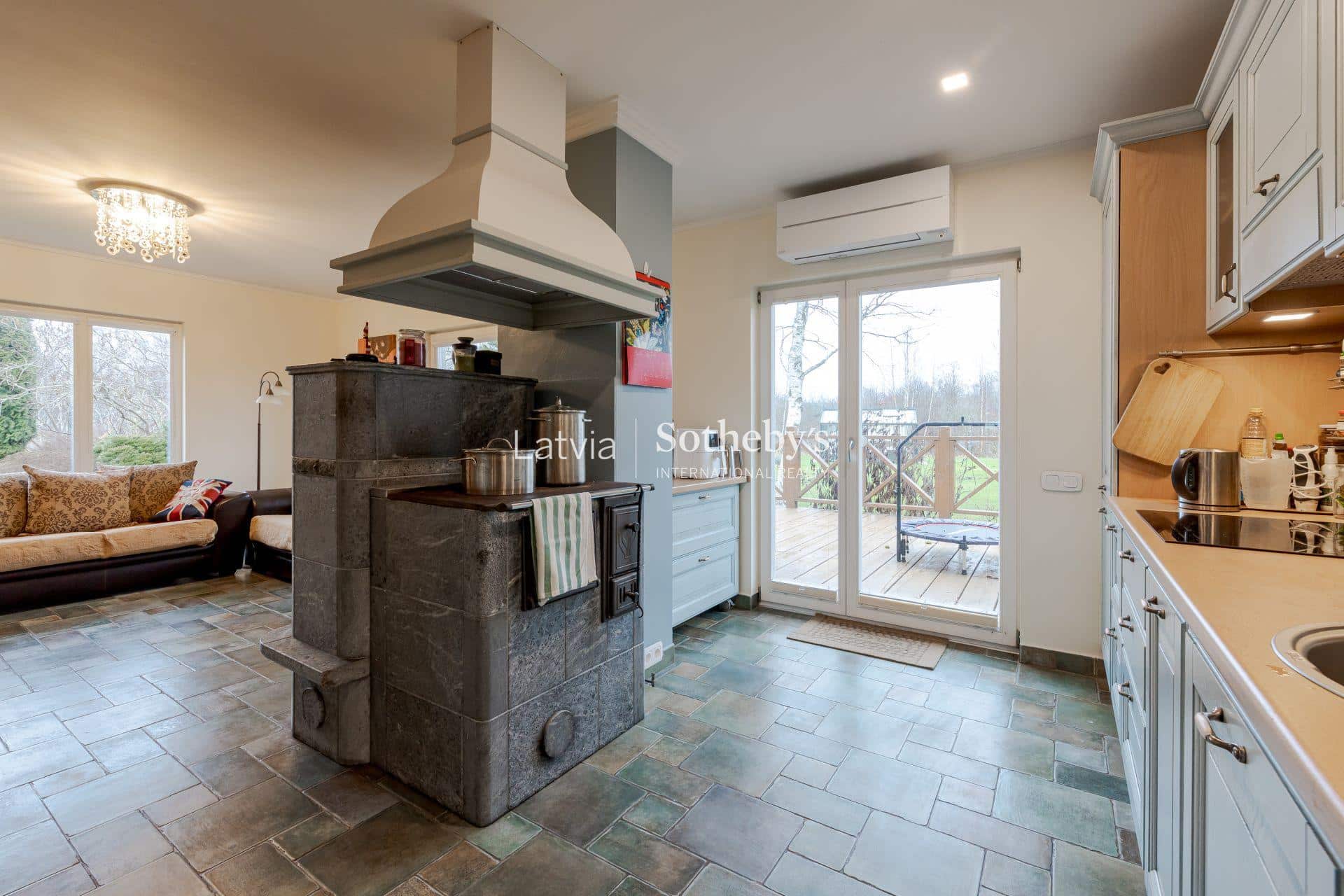 The property has its own water(65 meters deep), electricity connection (3 phases), sewage sumps, air heat pump, water filters, descaling system, solar panels for more economical property maintenance. Heat regulation - remotely. There are 2 fireplaces in the house.
