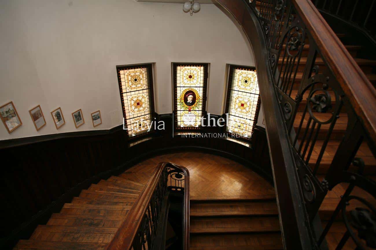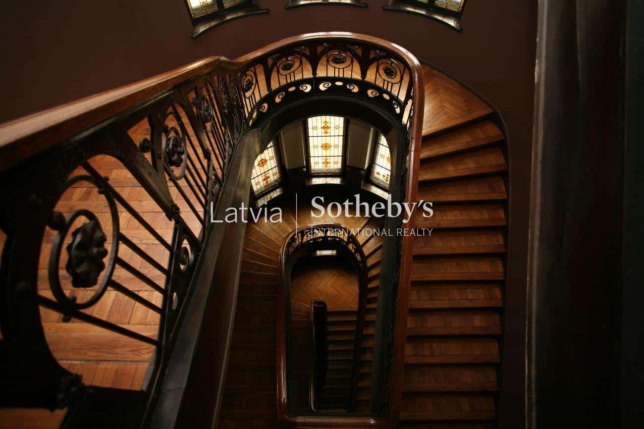 The design of the building was carried out by the renowned architect Eižens Laube, who has developed over 200 buildings in Riga. He utilized natural materials that have survived to this day, including stained glass windows, oak wall panels, hand-forged elements in the railings, and ceiling decorations, giving the building a unique charm and elegance.