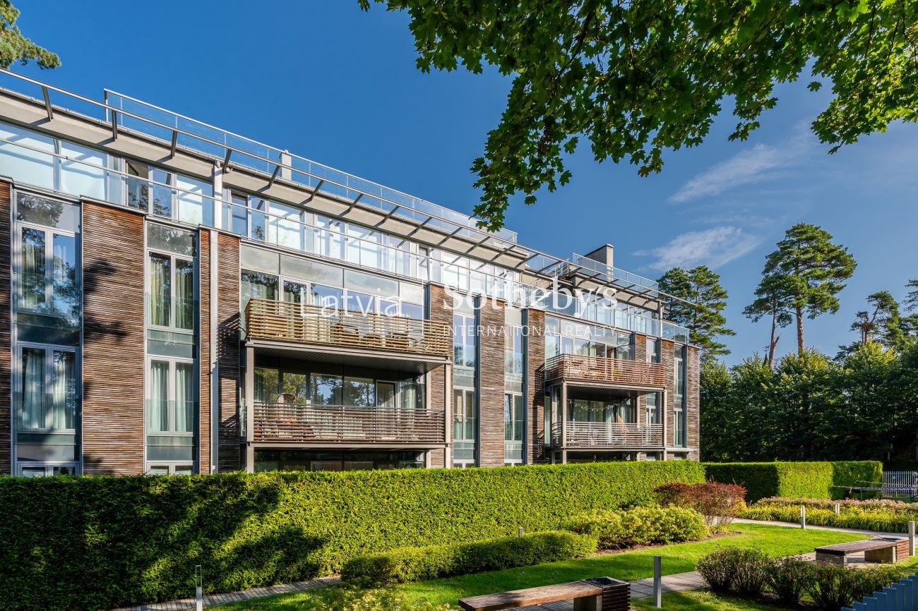 Blakus dzīvojamai ēkai atrodas SPA centrs ar baseinu, trenažieru zāle, kā arī dažādas kafejnīcas, restorāni. Līdz Rīgai 15 minūšu brauciens. Īres maksa norādīta ilgtermiņa īrei ne mazākai kā 12 mēneši.