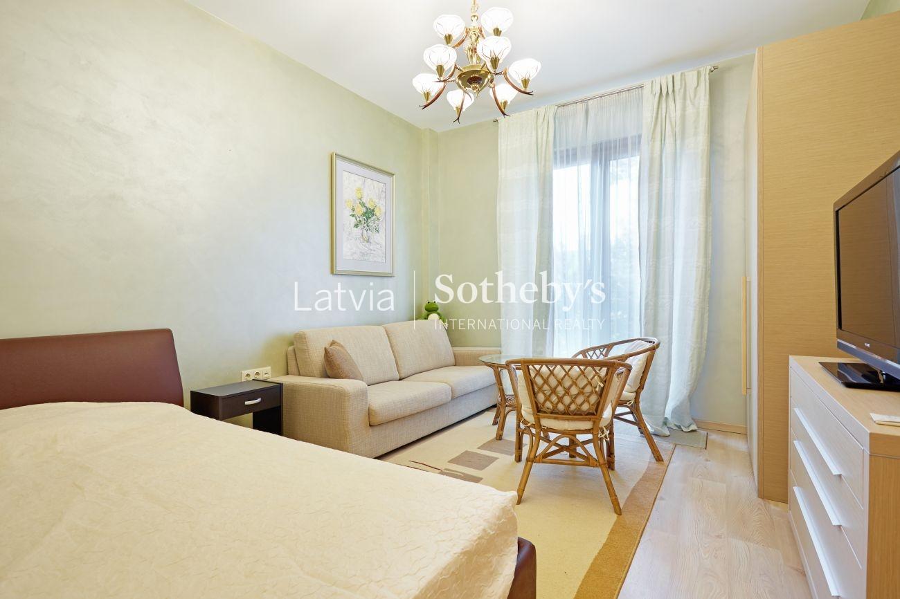 Ērts plānojums - ieejas halle un garderobe, plaša viesistaba ar ēdamzonu un virtuves zonu ar visu nepieciešamo ikdienai un ērtai dzīvošanai, trīs guļamistabas, 2 vannasistabas, balkons. Ēkā ir diennakts apsardze, slēgta teritorija, videonovērošana.Nomas maksā iekļauta viena apakašzemes stāvvieta. Teritorijas pagalmā atrodas bērnu laukums. Līdz jūrai vien 300 metru jeb 5 minūšu gājiens.