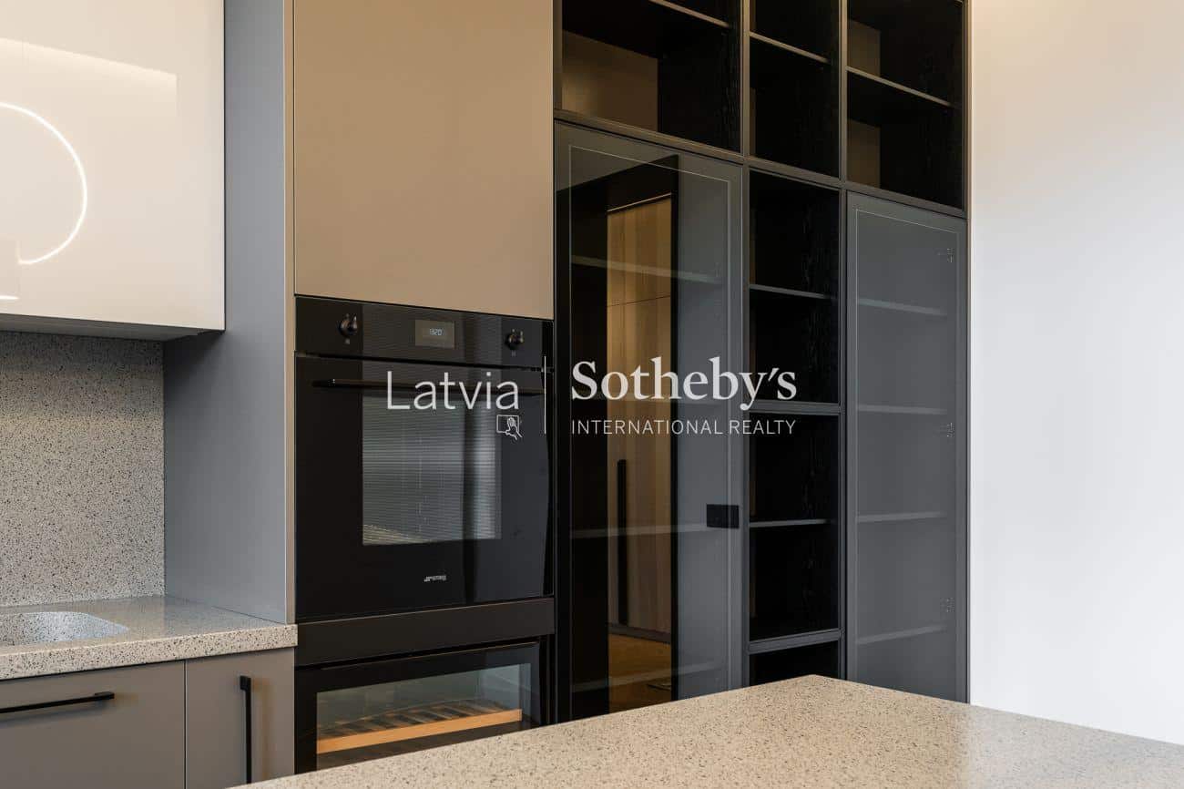 Dzīvoklī izvietota ieejas halle, plaša un gaiša viesistaba ar kamīnu un virtuves zonu, klusa un komfortabla Master guļamistaba ar savu vannas istabu un garderobi, papildus trīs izolētas guļamistabas un divas vannas istabas ar apsildāmo grīdu.