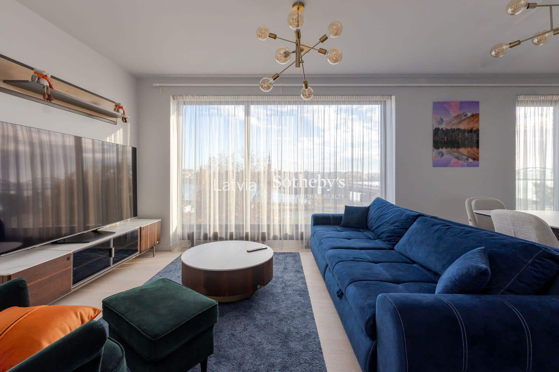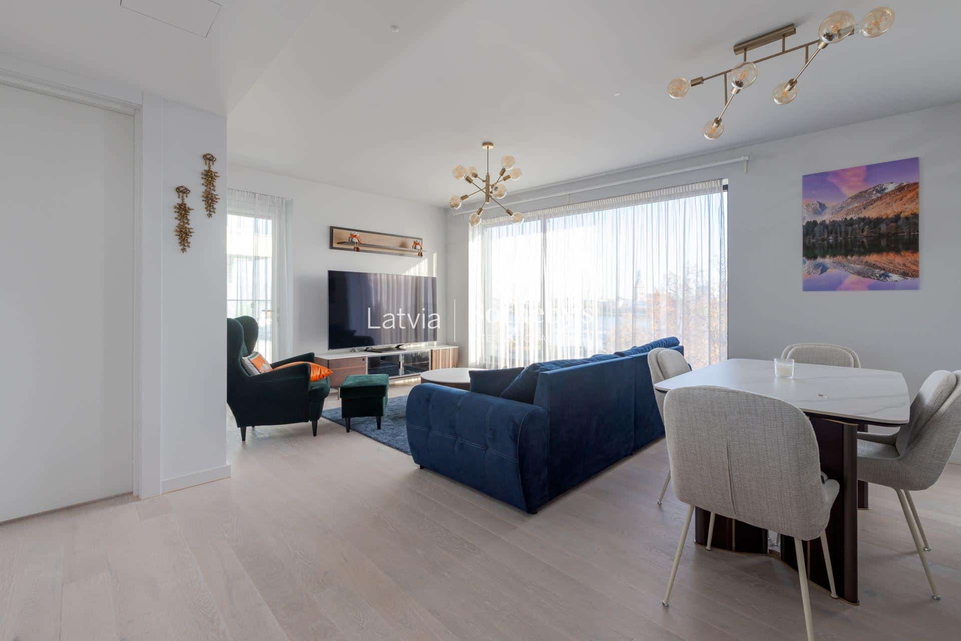 Piedāvājam jaunu , mēbelētu 4 istabu dzīvokli, kas atrodas jaunbūves 5. stāvā, ar pilnu iekšējo apdari, iebūvētu virtuves iekārtu ar tehniku un 4,4 m² terasi uz Daugavas pusi. Nemainīgais skats uz Vecrīgu un Daugavu padara šo īpašumu unikālu, savukārt ērtais plānojums nodrošina komfortu gan ģimenēm, gan tiem, kas vēlas apvienot dzīvesvietu ar biroju.