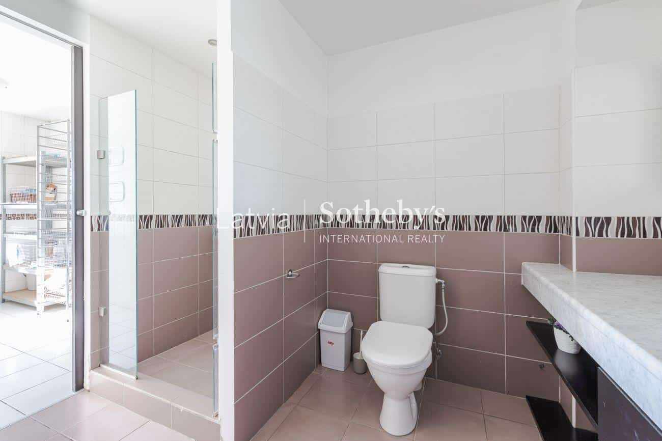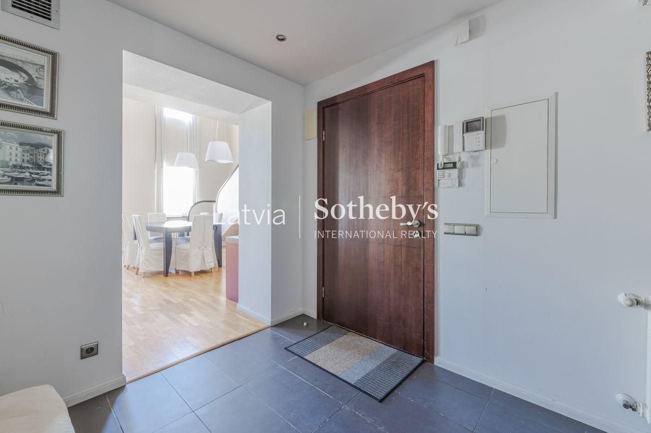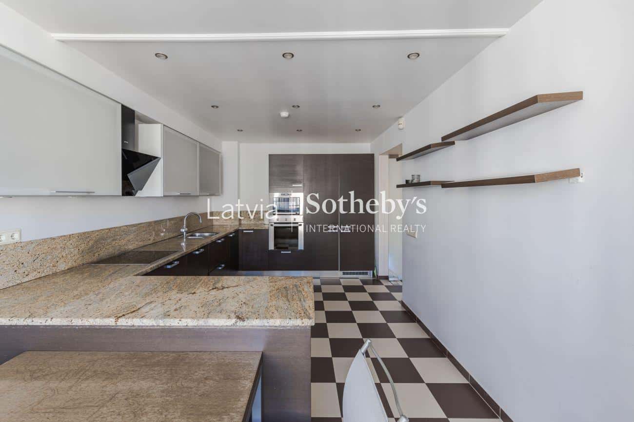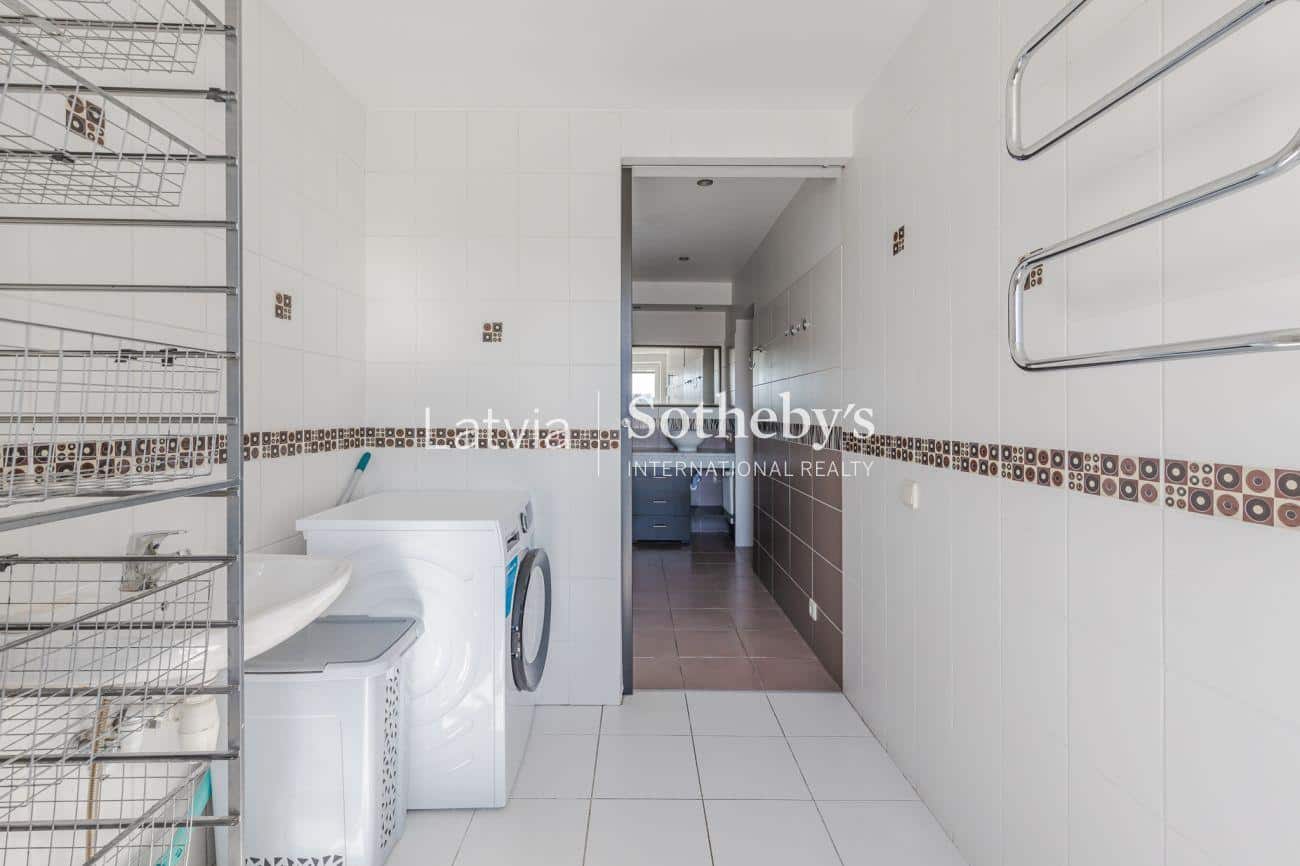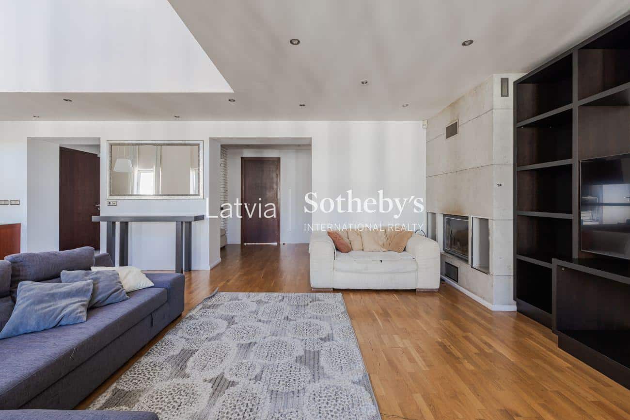 Dzīvokļa pirmajā līmenī atrodas plaša viesistaba, atsevišķa virtuves zona, kabinets, vannas istaba, saimniecības telpa un garderobe.