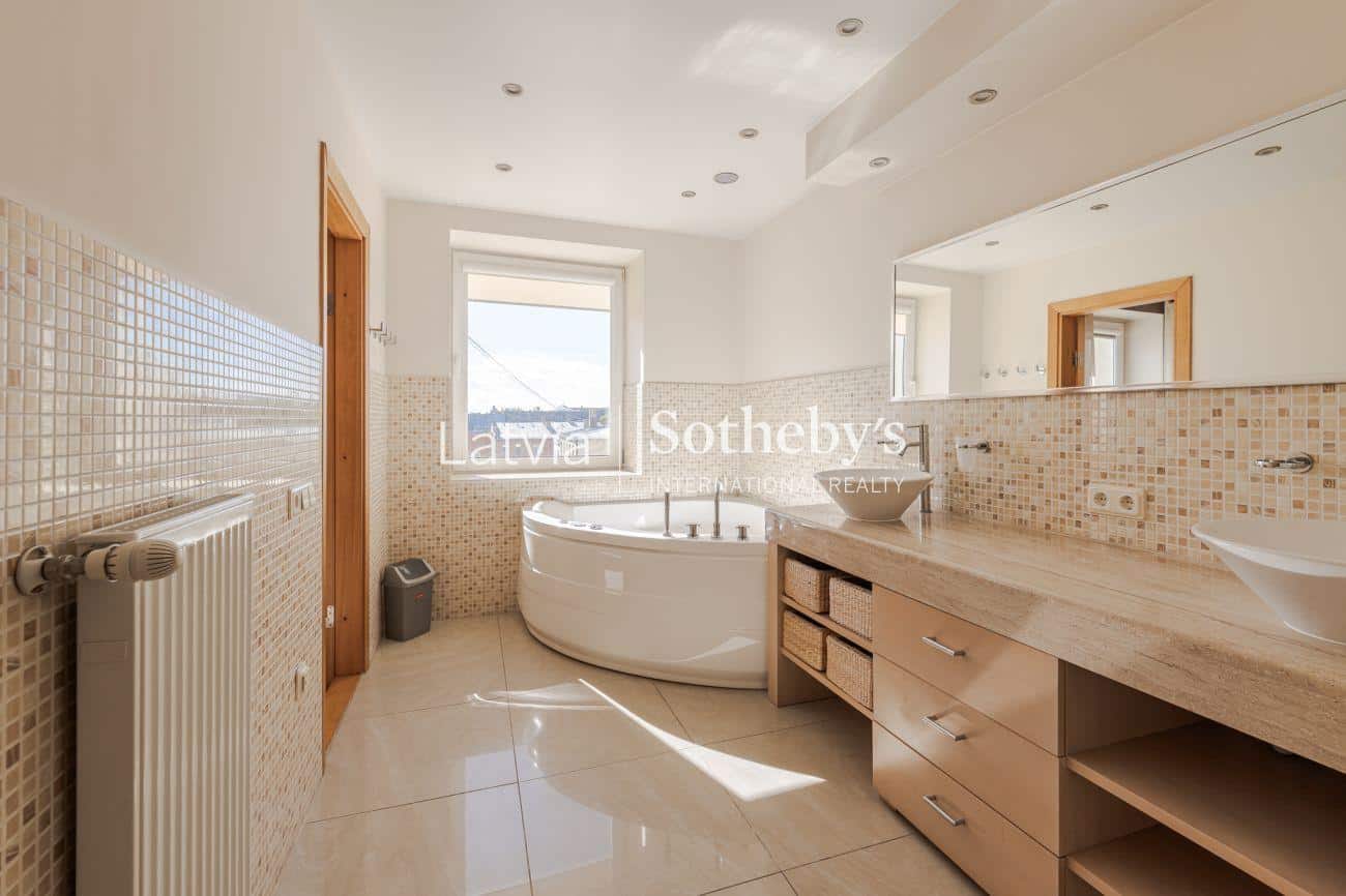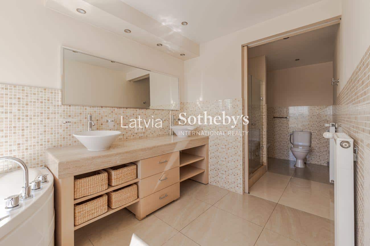 Dzīvokļa otrajā līmenī izvietotas trīs guļamistabas un divas vannas istabas. Saimnieku guļamistabā ir nodalīta neliela kabineta telpa ar stiklotu lodžiju un privātu vannas istabu.