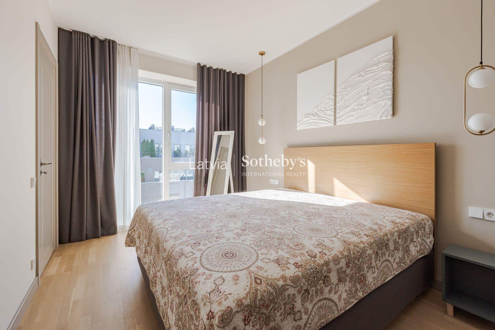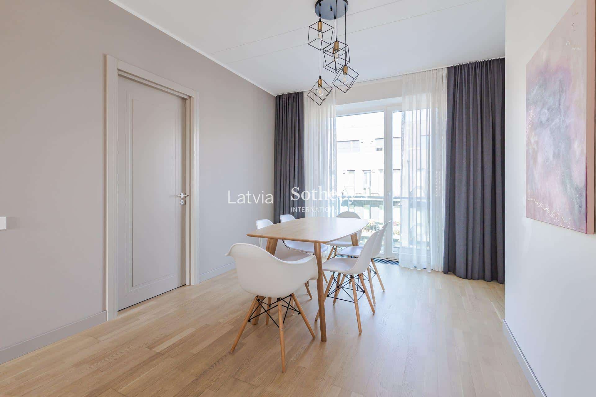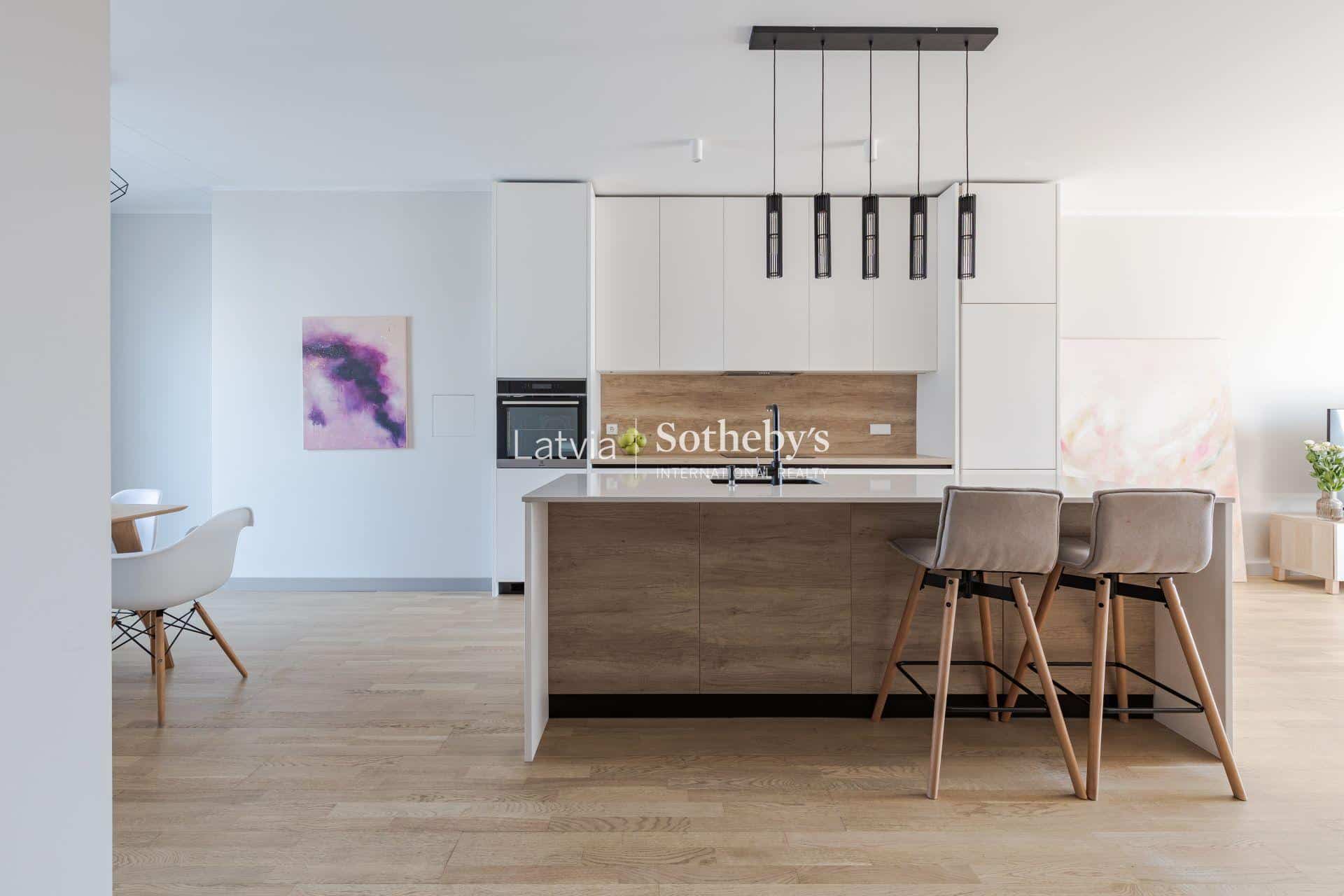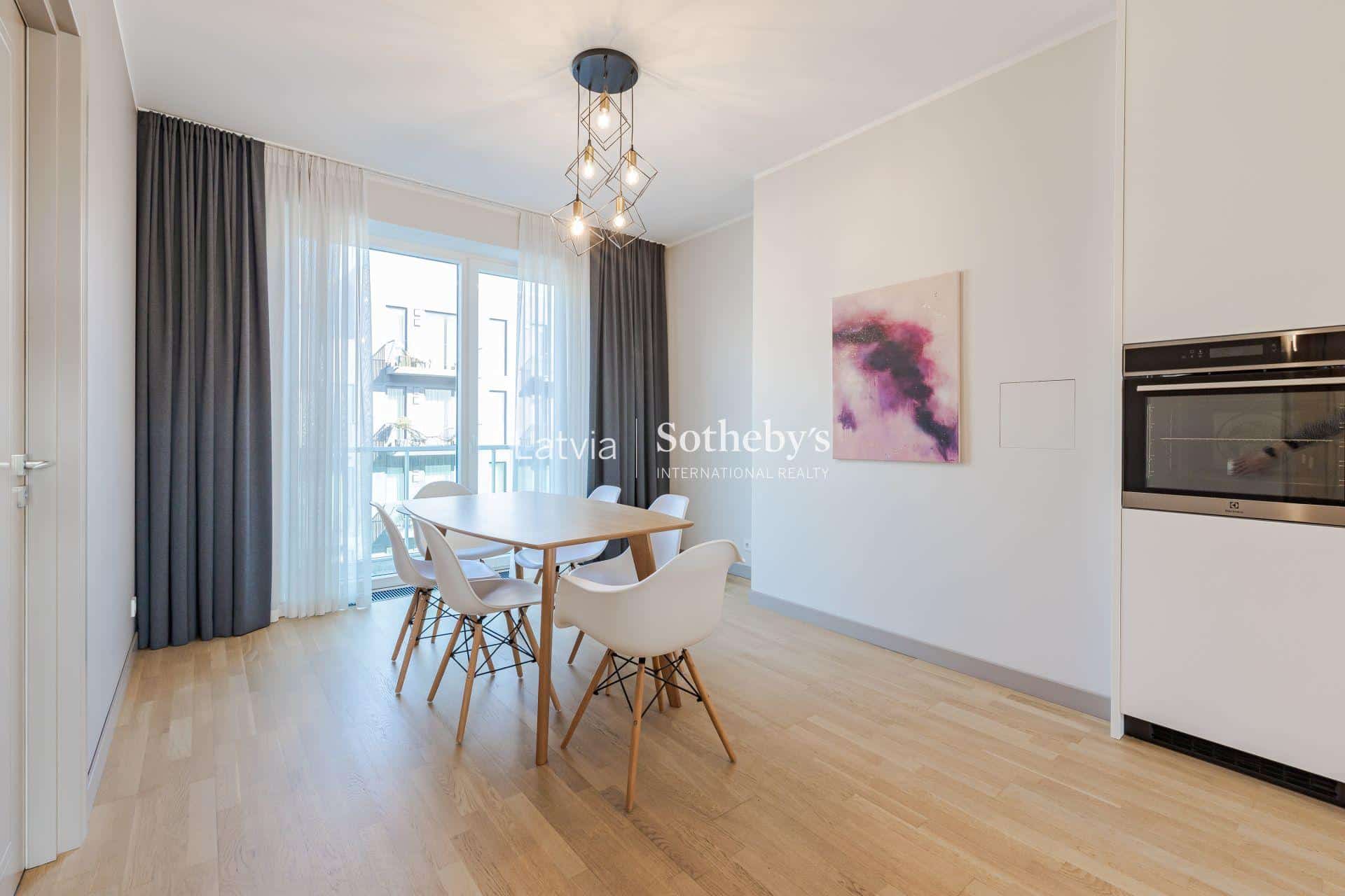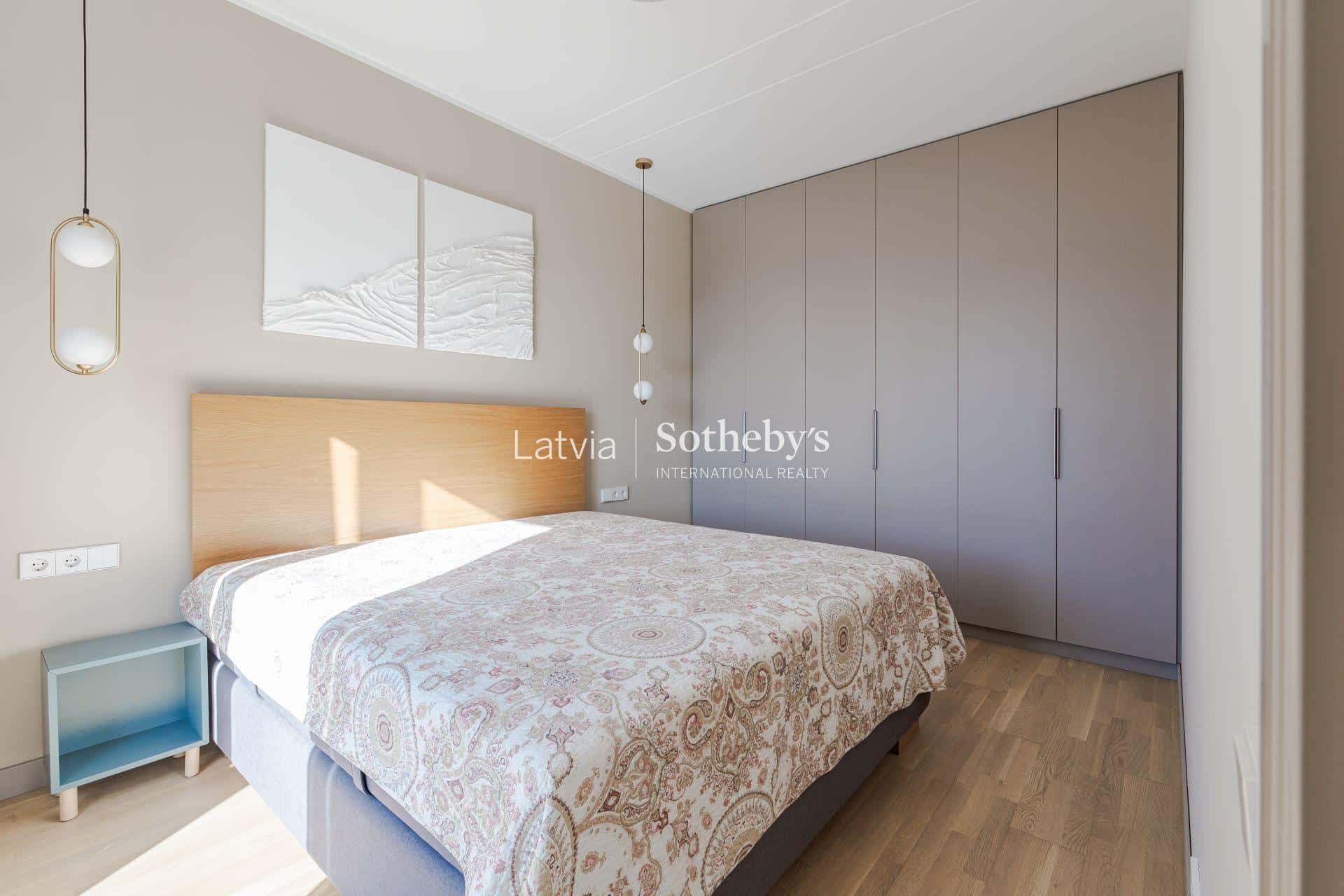 Dzīvoklis ir pilnībā mēbelēts. Tam ir pārdomāts, praktisks plānojums un gaumīgs interjers. Izvēlētā toņu palete rada harmonisku un mājīgu noskaņu. Dzīvokļa plānojums: viesistaba, kas apvienota ar pilnībā aprīkotu virtuves zonu, no viesistabas izeja uz plašu balkonu, guļamistaba, darba kabinets (vai otra guļamistaba), vannasistaba.