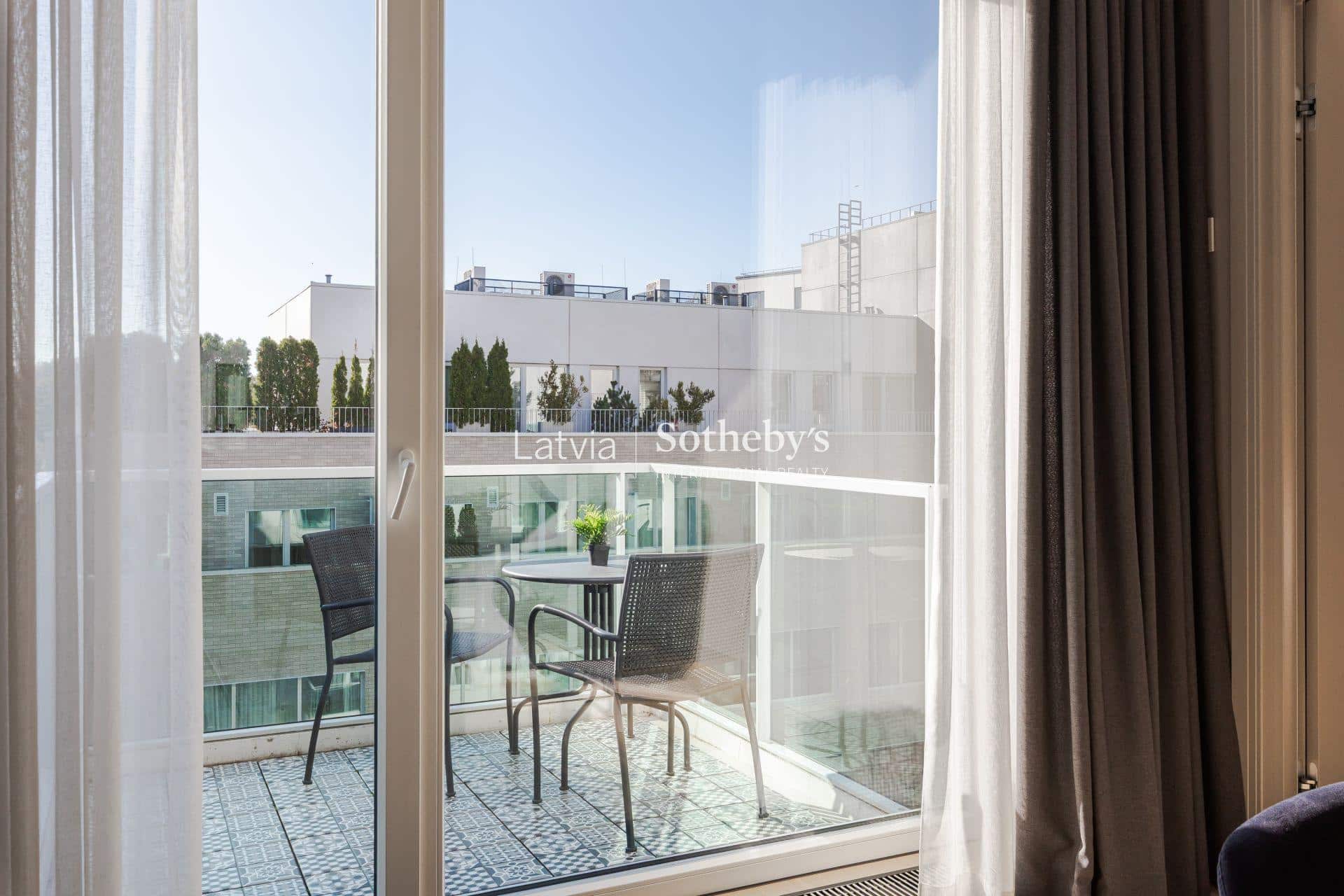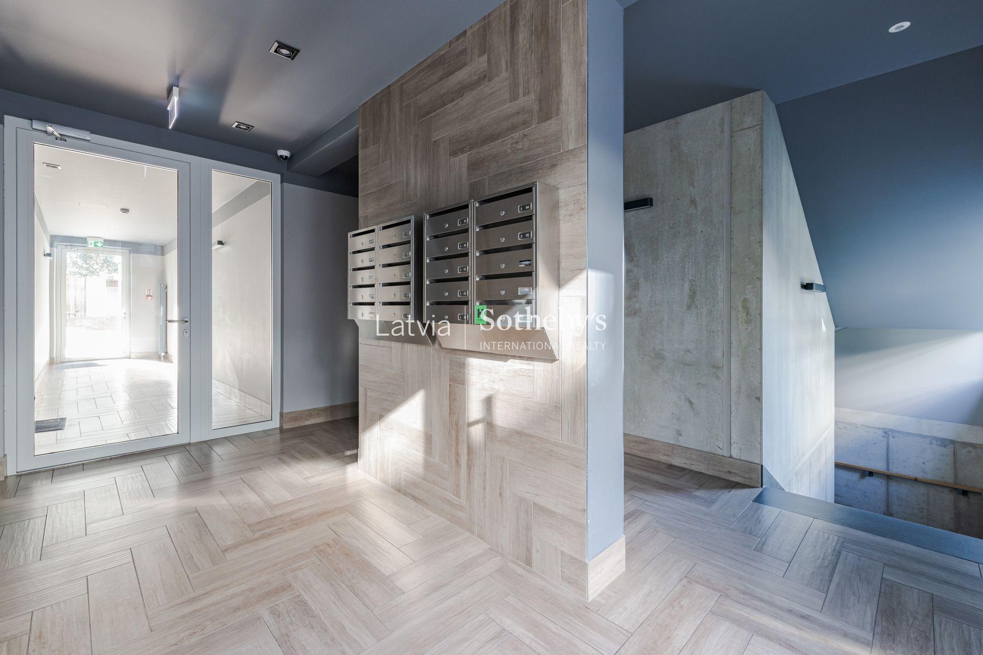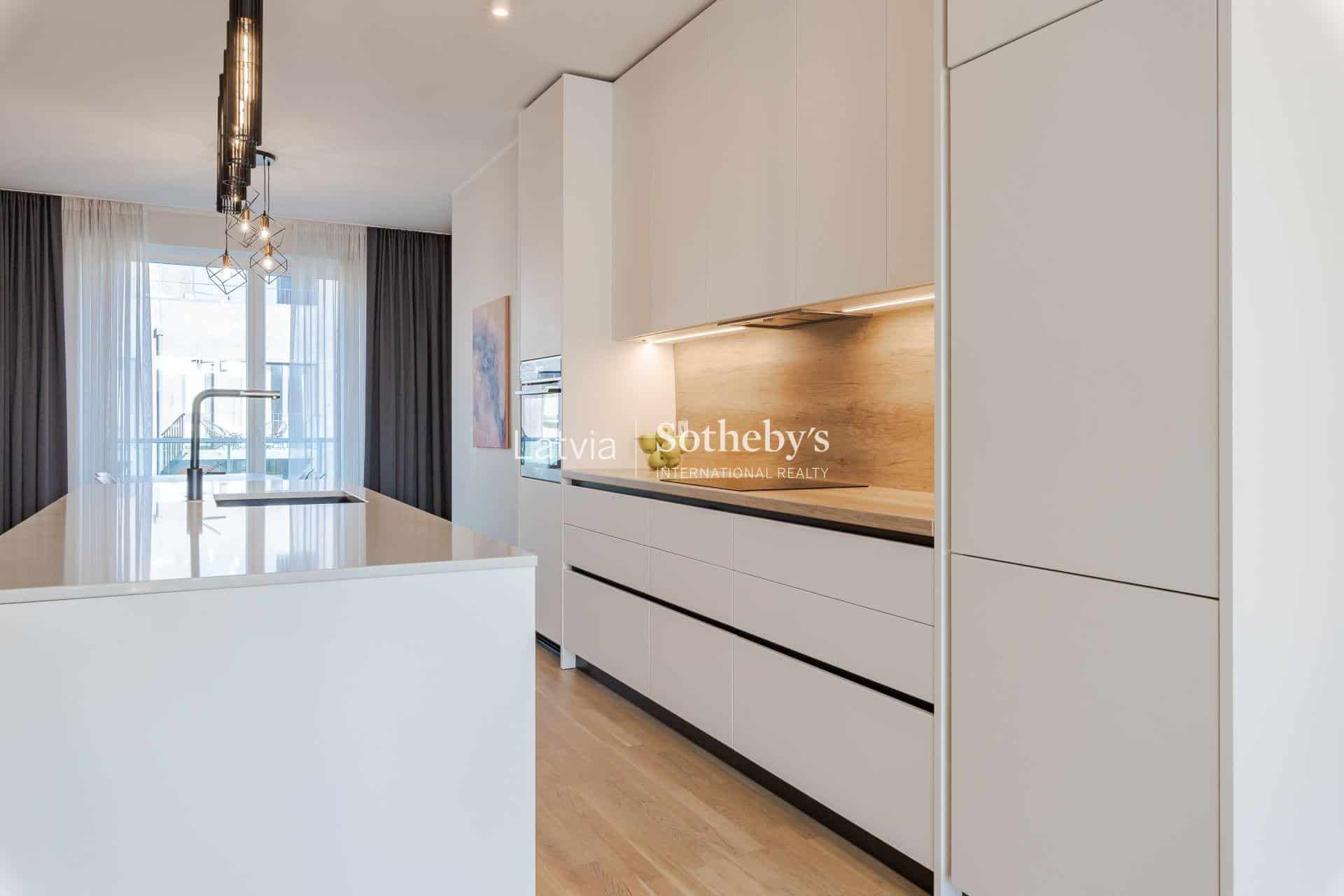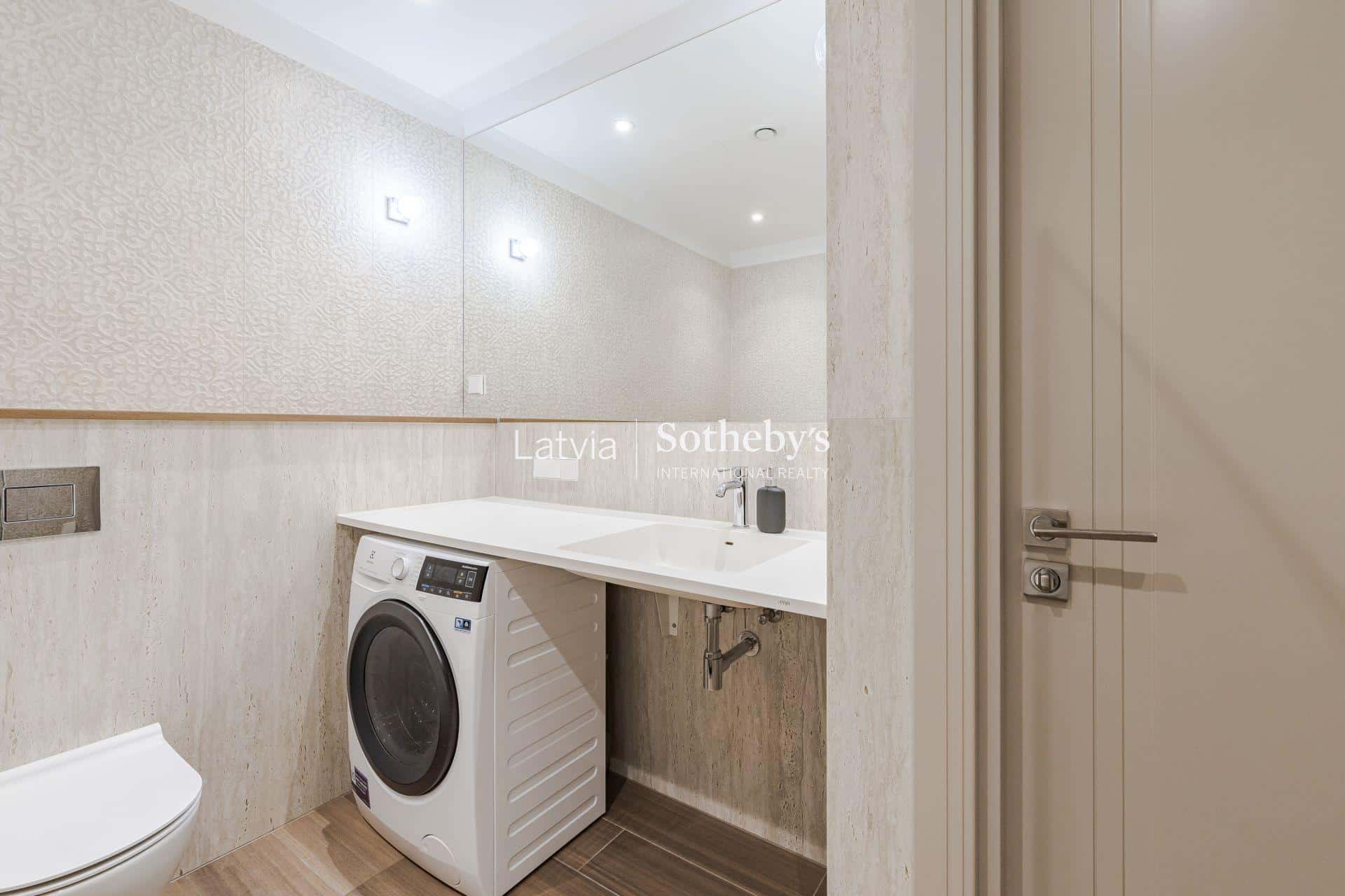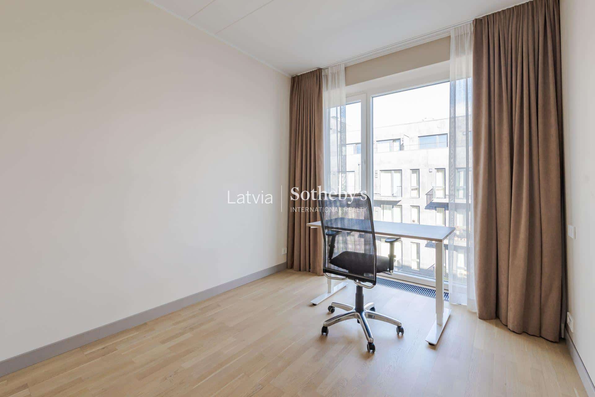 Dzīvoklis ir pilnībā mēbelēts. Tam ir pārdomāts, praktisks plānojums un gaumīgs interjers. Izvēlētā toņu palete rada harmonisku un mājīgu noskaņu. Dzīvokļa plānojums: viesistaba, kas apvienota ar pilnībā aprīkotu virtuves zonu, no viesistabas izeja uz plašu balkonu, guļamistaba, darba kabinets (vai otra guļamistaba), vannasistaba.