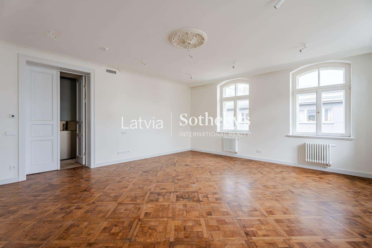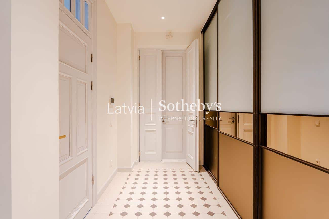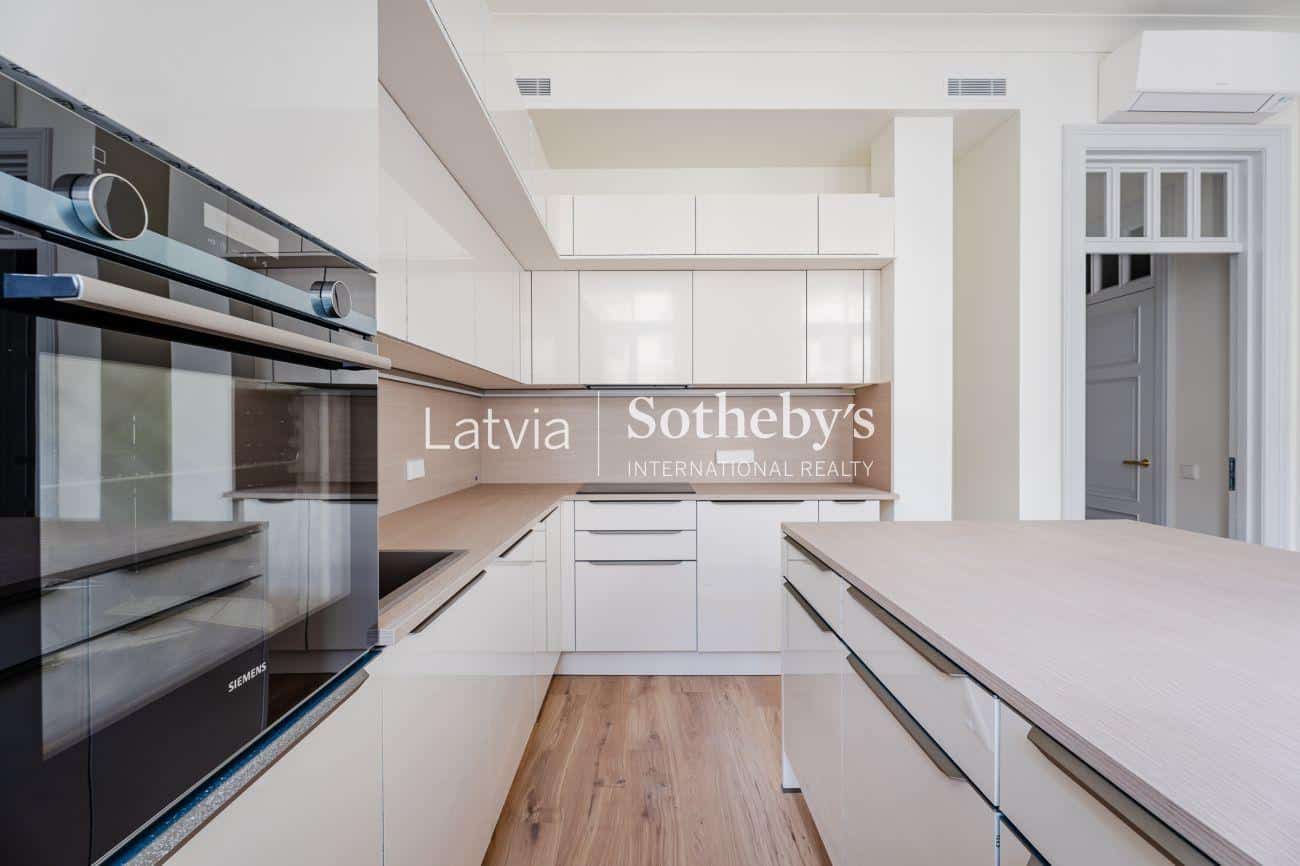 Īpašums atrodas vēsturiskās ēkas 4. stāvā un tiek piedāvāts ar augstvērtīgu klasiskā stila iekšējo apdari. Plānojums paredz galveno viesistabu, ēdamistabu, atsevišķu virtuves zonu, četras guļamistabas, trīs vannas istabas un saimniecības telpu. Virtuves aprīkojumā ietilpst Nolte Küchen iebūvētās mēbeles ar premium klases komplektāciju, Siemens sadzīves tehnika, Franke santehnika, regulējams LED apgaismojums un plašas darba virsmas.