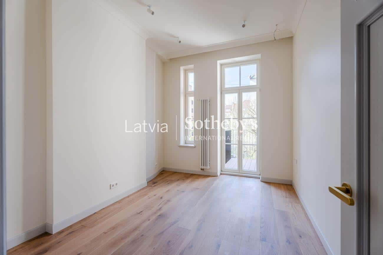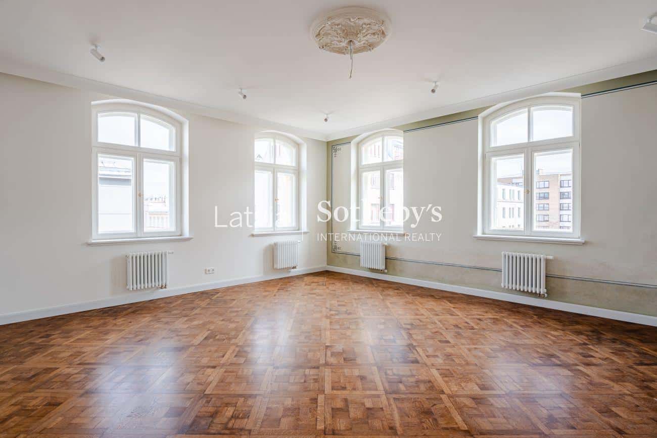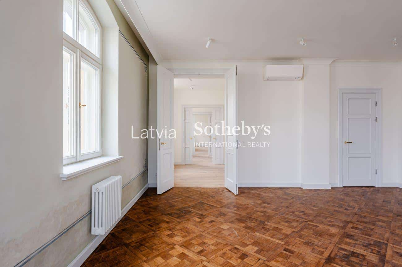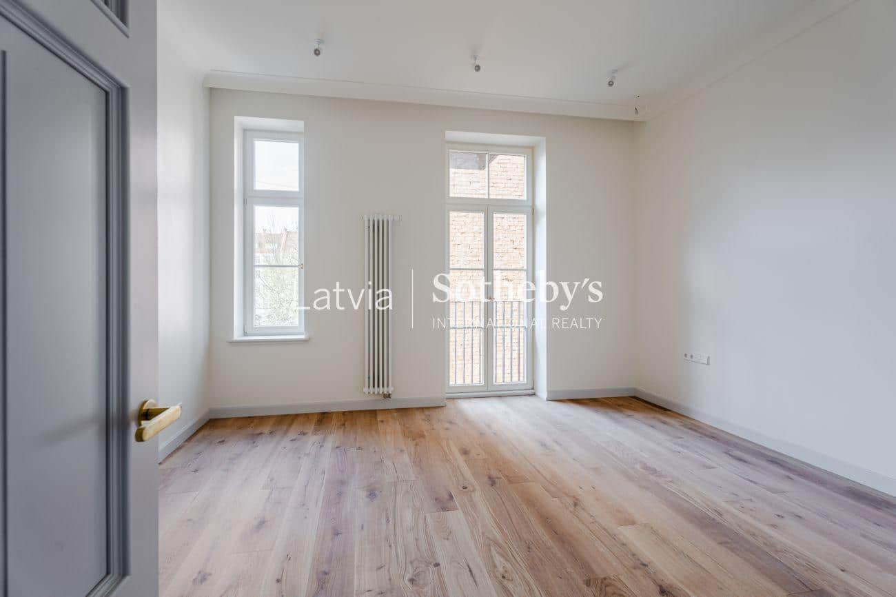 Īpašums atrodas vēsturiskās ēkas 4. stāvā un tiek piedāvāts ar augstvērtīgu klasiskā stila iekšējo apdari. Plānojums paredz galveno viesistabu, ēdamistabu, atsevišķu virtuves zonu, četras guļamistabas, trīs vannas istabas un saimniecības telpu. Virtuves aprīkojumā ietilpst Nolte Küchen iebūvētās mēbeles ar premium klases komplektāciju, Siemens sadzīves tehnika, Franke santehnika, regulējams LED apgaismojums un plašas darba virsmas.