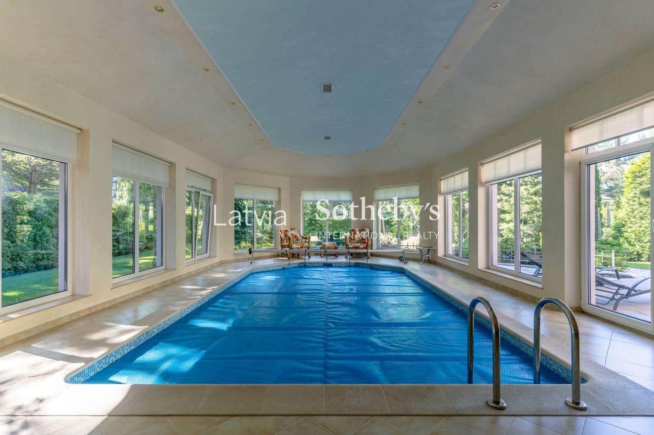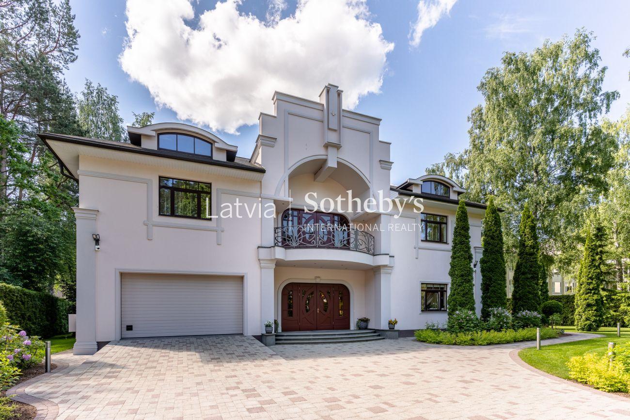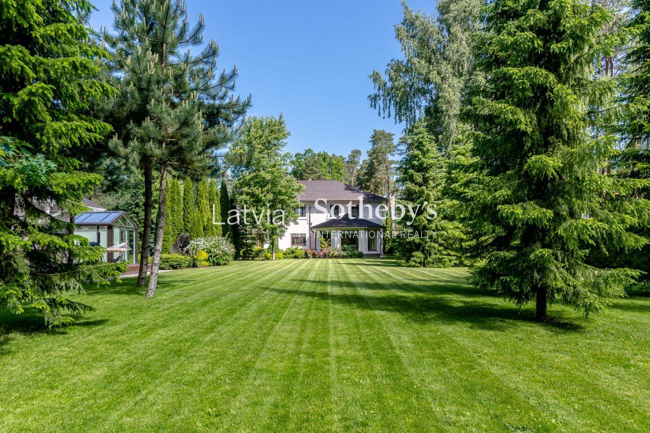 Mājā ir plaša viesistaba ar kamīnu, virtuve ar visu nepieciešamo sadzīves tehniku, trīs guļamistabas un kabinets, kas pēc nepieciešamības izmantojams kā ceturtā guļamistaba. Pirmajā stāvā atrodas arī garāža ar vietu divām automašīnām un pirts ar atpūtas zonu un baseinu, no kura paveras skats uz burvīgu, ainaviski veidotu dārzu.