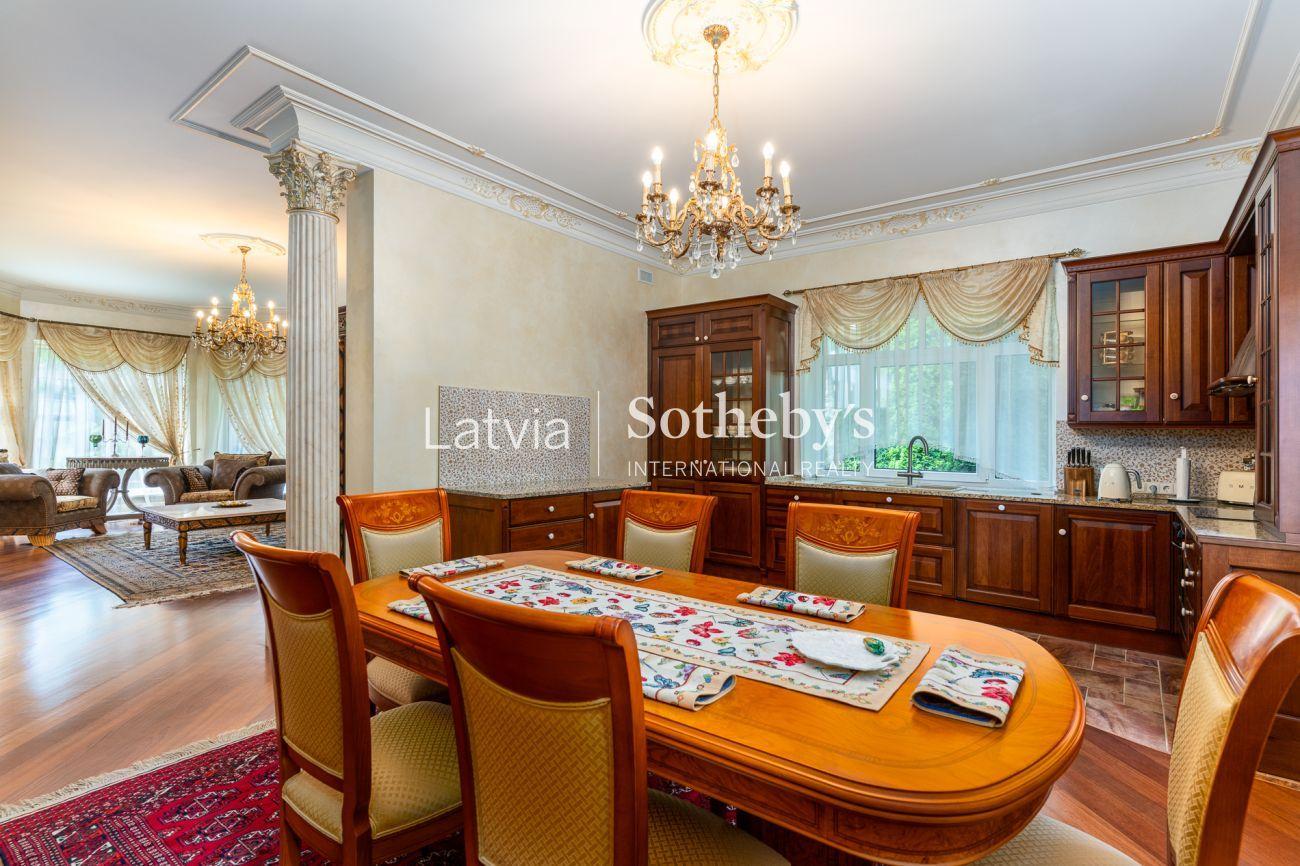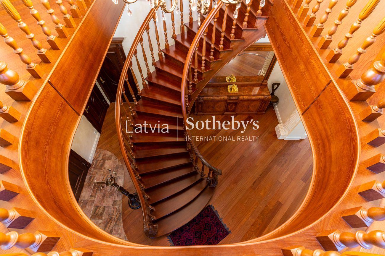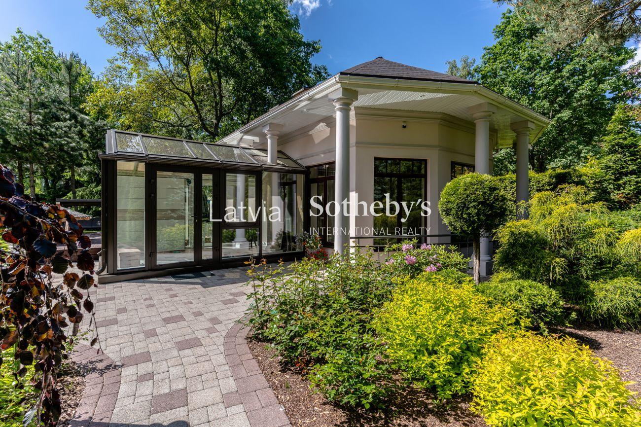 Mājā ir plaša viesistaba ar kamīnu, virtuve ar visu nepieciešamo sadzīves tehniku, trīs guļamistabas un kabinets, kas pēc nepieciešamības izmantojams kā ceturtā guļamistaba. Pirmajā stāvā atrodas arī garāža ar vietu divām automašīnām un pirts ar atpūtas zonu un baseinu, no kura paveras skats uz burvīgu, ainaviski veidotu dārzu.