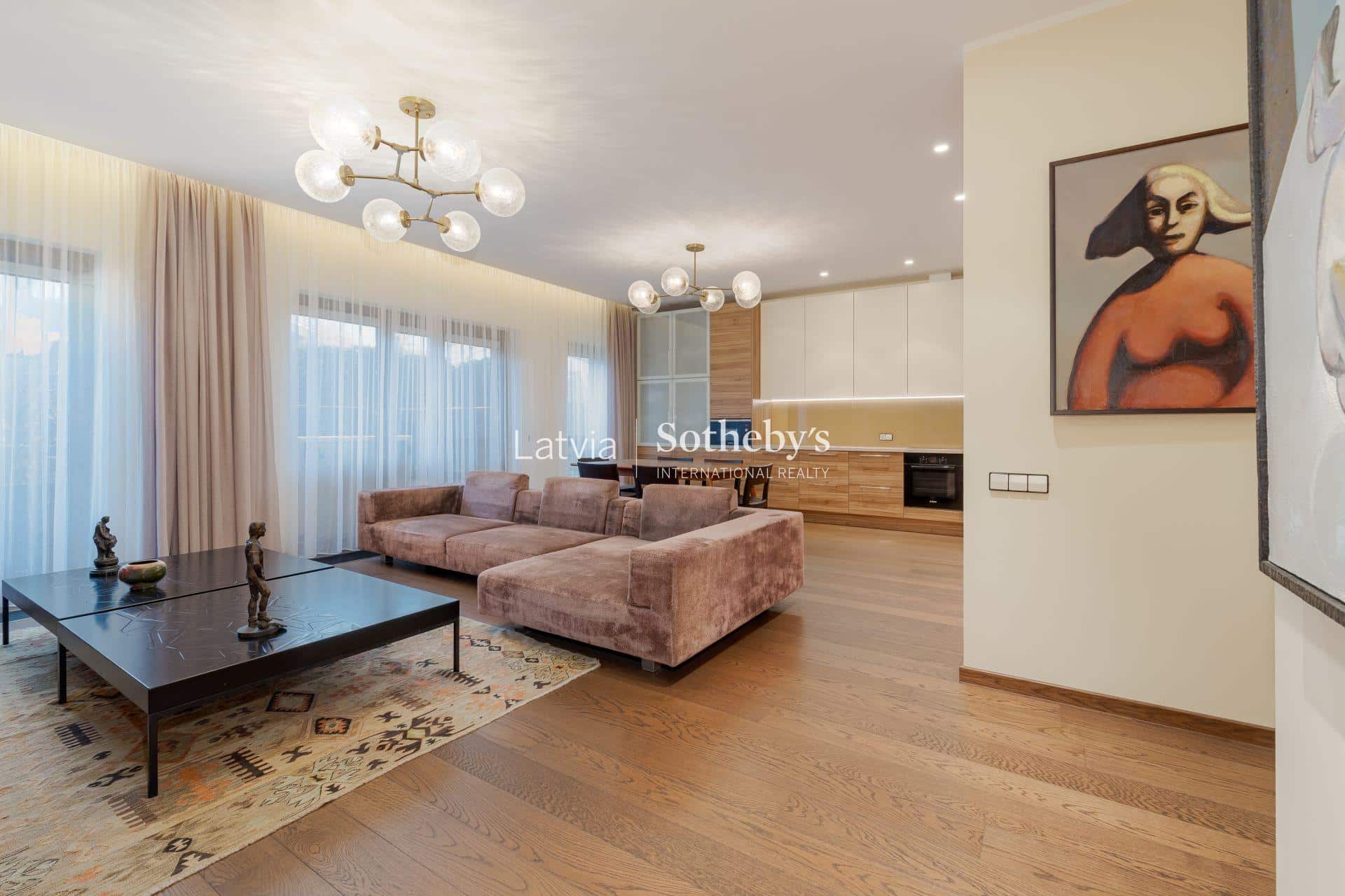 Dzīvokļa interjers ir izsmalcināts savā vienkāršībā – mūsdienīgs, svaigs un elegants, radīts tiem, kas novērtē kvalitāti un detaļas.