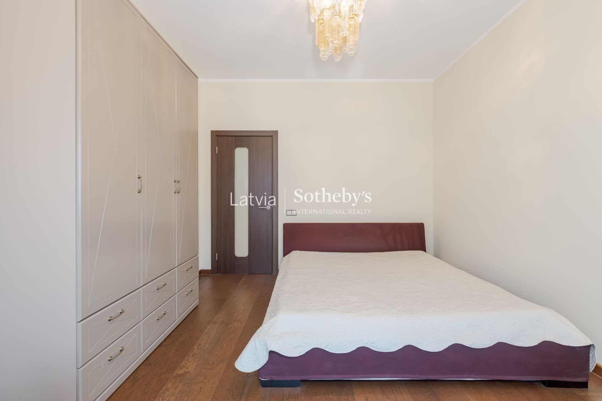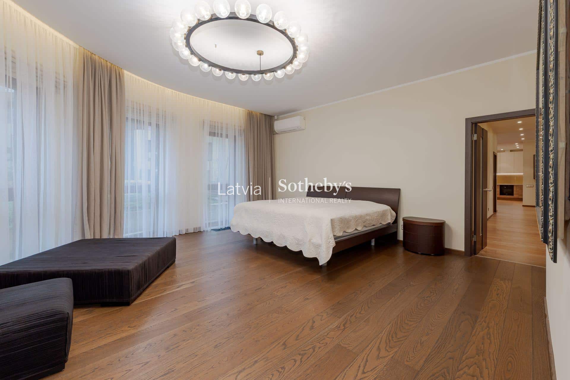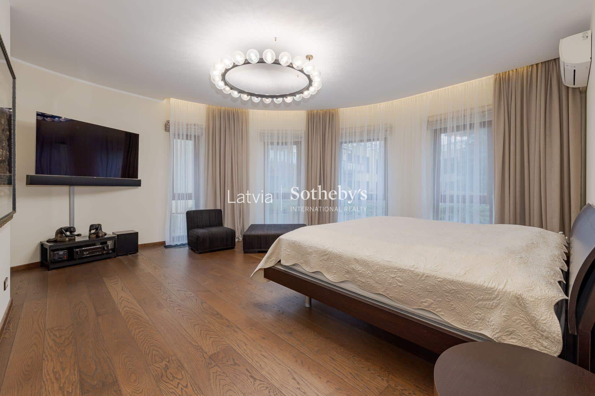 Iespaidīga master bedroom, kas atgādina boutique klases viesnīcas numuru – ar savu garderobi un privātu vannas istabu.
