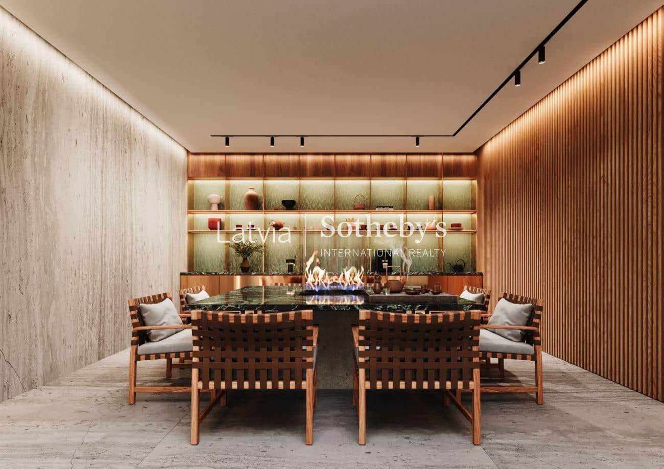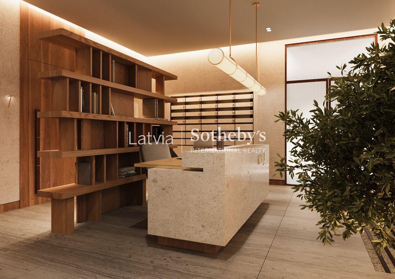 Apartamentu ēkas lobijs būs unikāla telpa, kura paredzēta kā grezna un izsmalcināta uzgaidāmā telpa, ar kosjerža vietu un zaļo stūrīti mājas iedzīvotājiem un viesiem.
