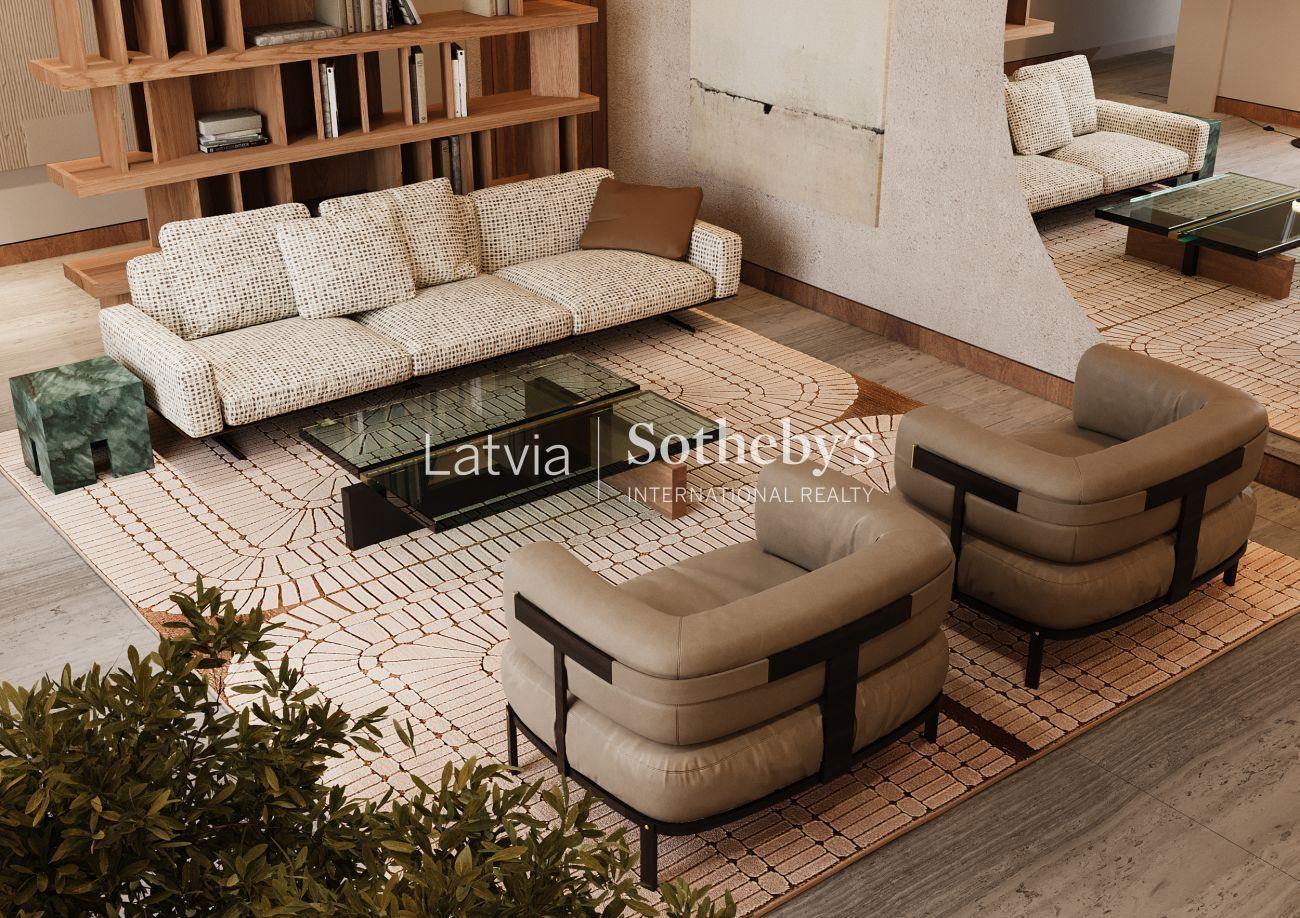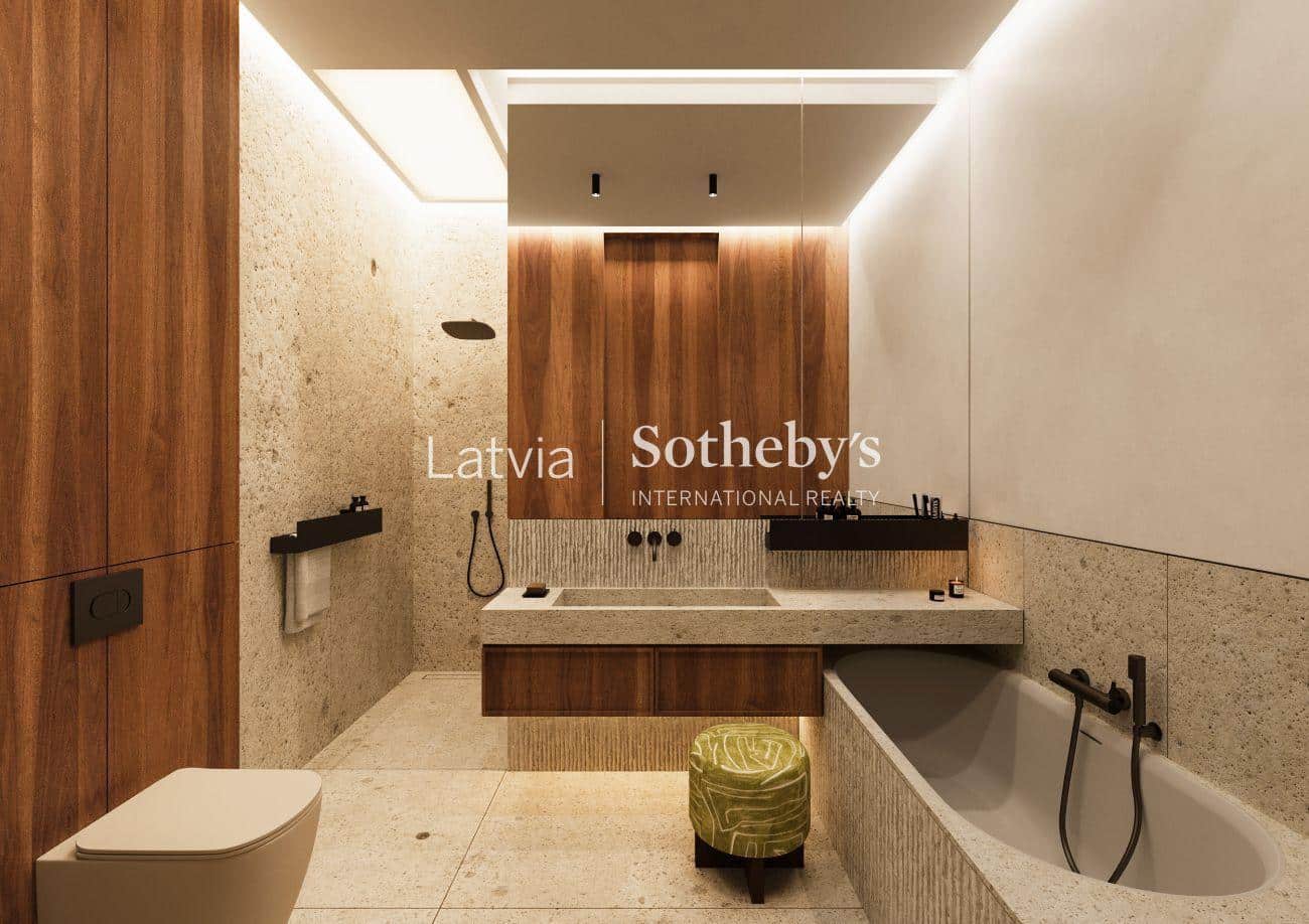Apartamentos lielisks plānojums ar ieejas halli ar viesu tualeti un garderobes telpu, plašu dzīvojamo istabu ar virtuves zonu un izeju uz āra terasi, 2 atsevišķām guļamistabām, kur katra ar savu vannas istabu un garderobes telpu, atsevišķa veļas telpa.