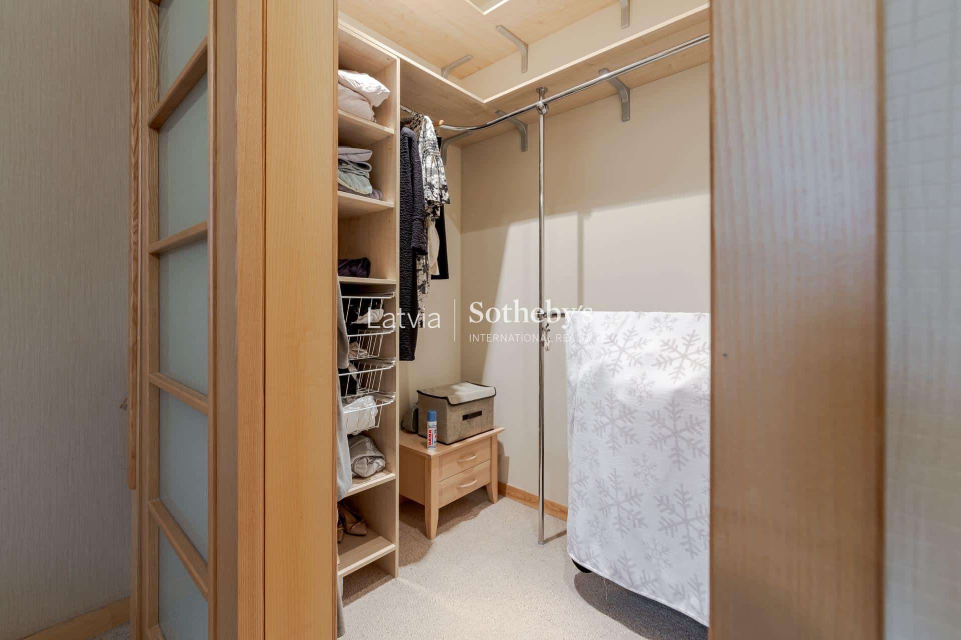 Dzīvoklis izceļas ar pārdomātu un ērtu plānojumu. Tajā ir plaša dzīvojamā zona, kas harmoniski apvienota ar virtuves telpu, radot mājīgu vidi gan ikdienai, gan viesu uzņemšanai. Divas izolētas guļamistabas nodrošina privātumu un komfortu, un katrai no tām ir sava garderobes telpa un privāta vannas istaba. Papildus dzīvoklī ir vēl viens sanitārais mezgls, kas ir īpaši ērti ikdienas lietošanai un viesiem.
