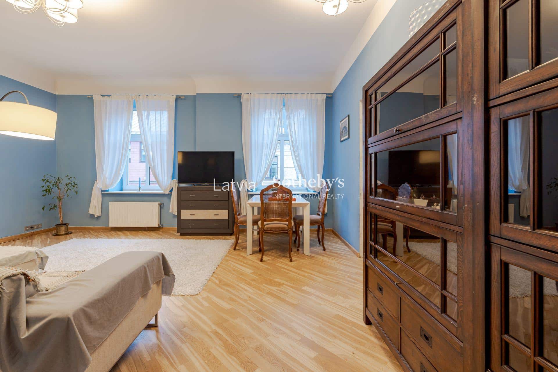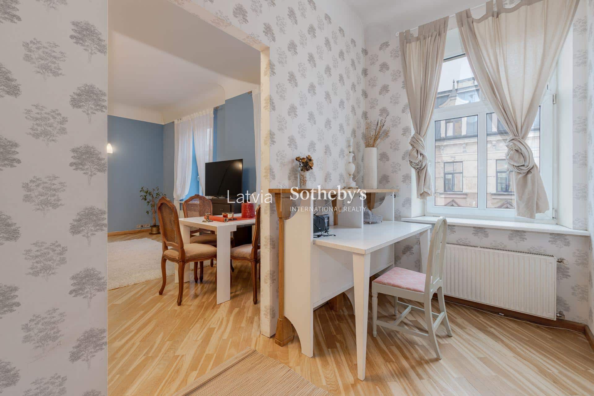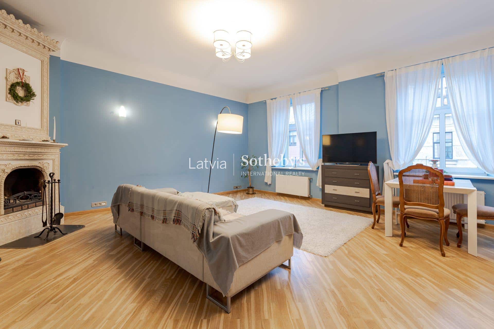 3 istabu dzīvoklis ar kamīnu centrā