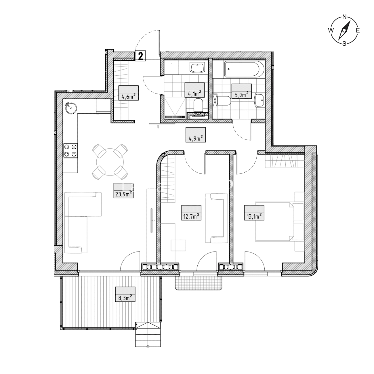 - privāta terase, kas piešķir papildu telpu un komfortu.