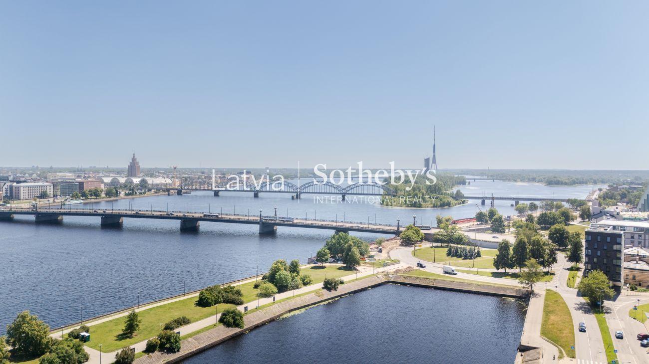 Piedāvājam iegādei jaunu 2 istabu dzīvokli ar 37 kvm viesistabu ar nemainīgu Vecrīgas Panorāmas skatu, kas apvienota ar aprīkotu virtuvi. Dzīvoklis atrodas jaunbūves 6.stāvā ar pilnu iekšējo apdari, un ar 12 kvm. saulainu terasi uz Daugavas upes pusi. Ienākot dzīvoklī ir koridors ar vietu iebūvētajam skapim, tālāk ir ieeja guļamistabā ar skatiem uz Vaņšu tiltu, un vannasistabā ar WC un dušu. Plašā viesistaba ar Vecrīgas panorāmas skatu ir apvienota ar nedaudz nodalītu virtuves zonu. No viesistabas ir izeju uz terasi ar aizveramiem stikliem, kas vērsta ar skatiem uz Daugavu un Akmens tiltu.
