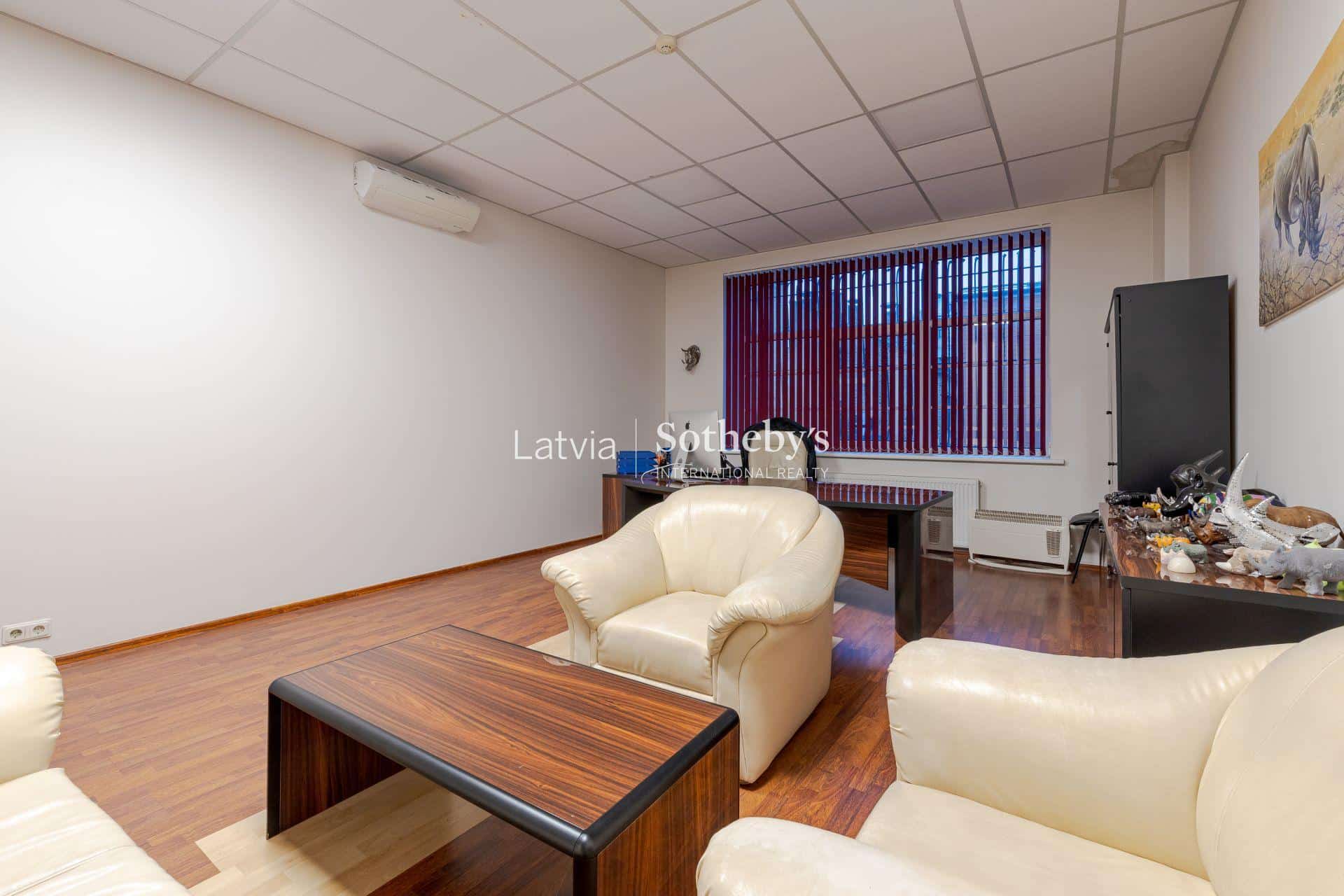 Plānojums paredz 5 izolētus kabinetus vai istabas, plašu caurstaigājamu zāli, san.mezglu un noliktavas telpu. Kabinetos izbūvēta kondicionēšanas sistēma, logi vērsti uz pagalmu. Griestu augstums telpā sasniedz 3,05 m.