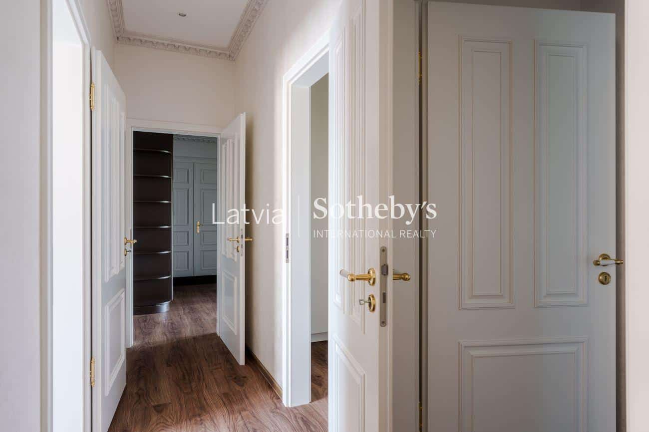 Dzīvokļa apdarē izmantotas Vācu ražotāju koka durvis, Itālijā ražotas lustras. Itālu flīzes un santehnika.