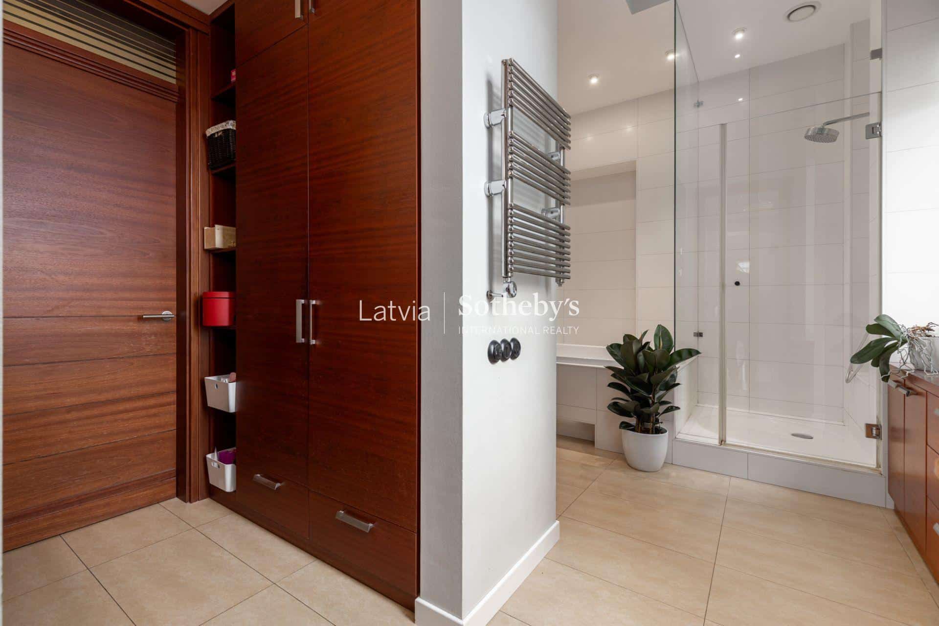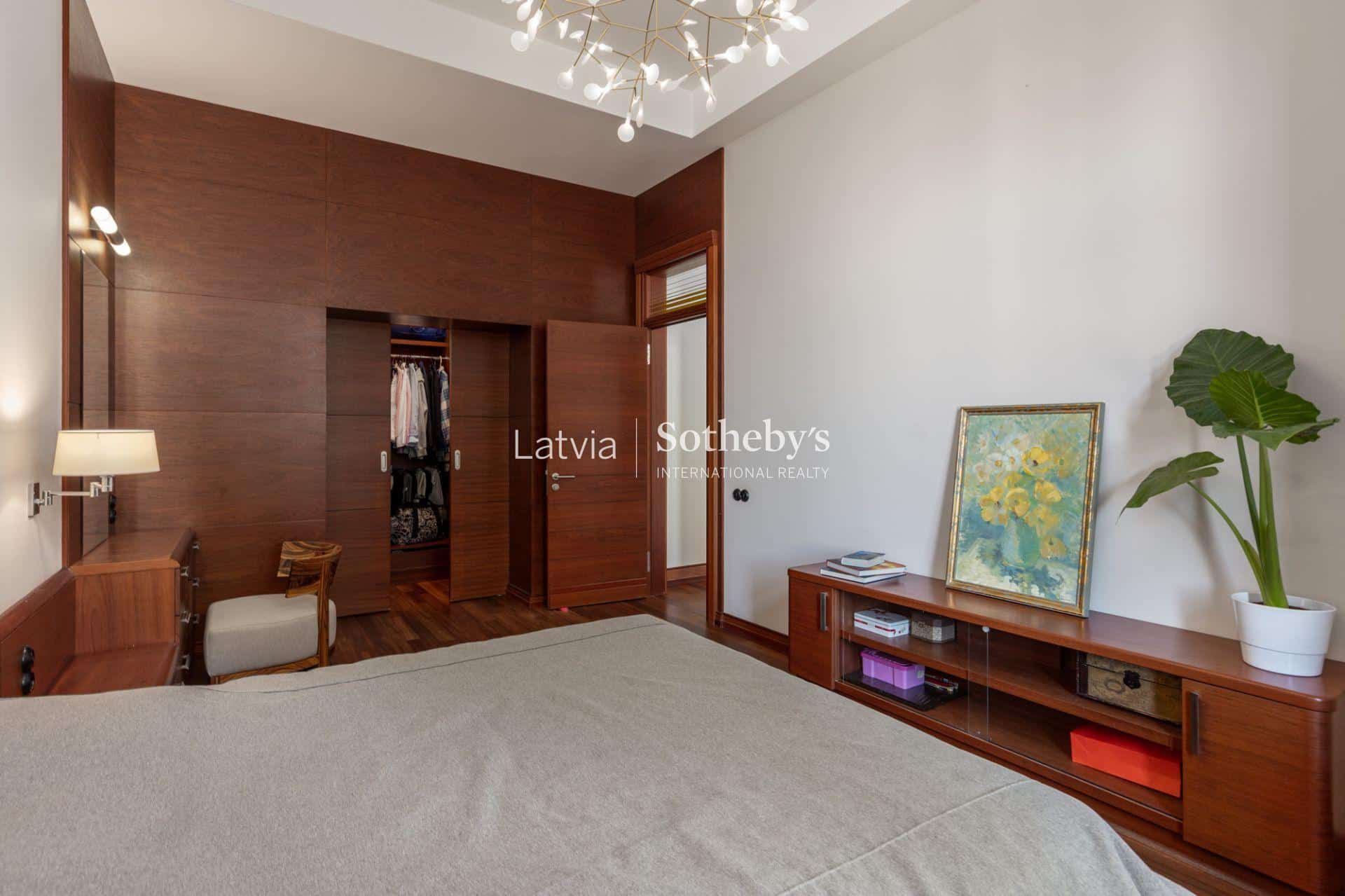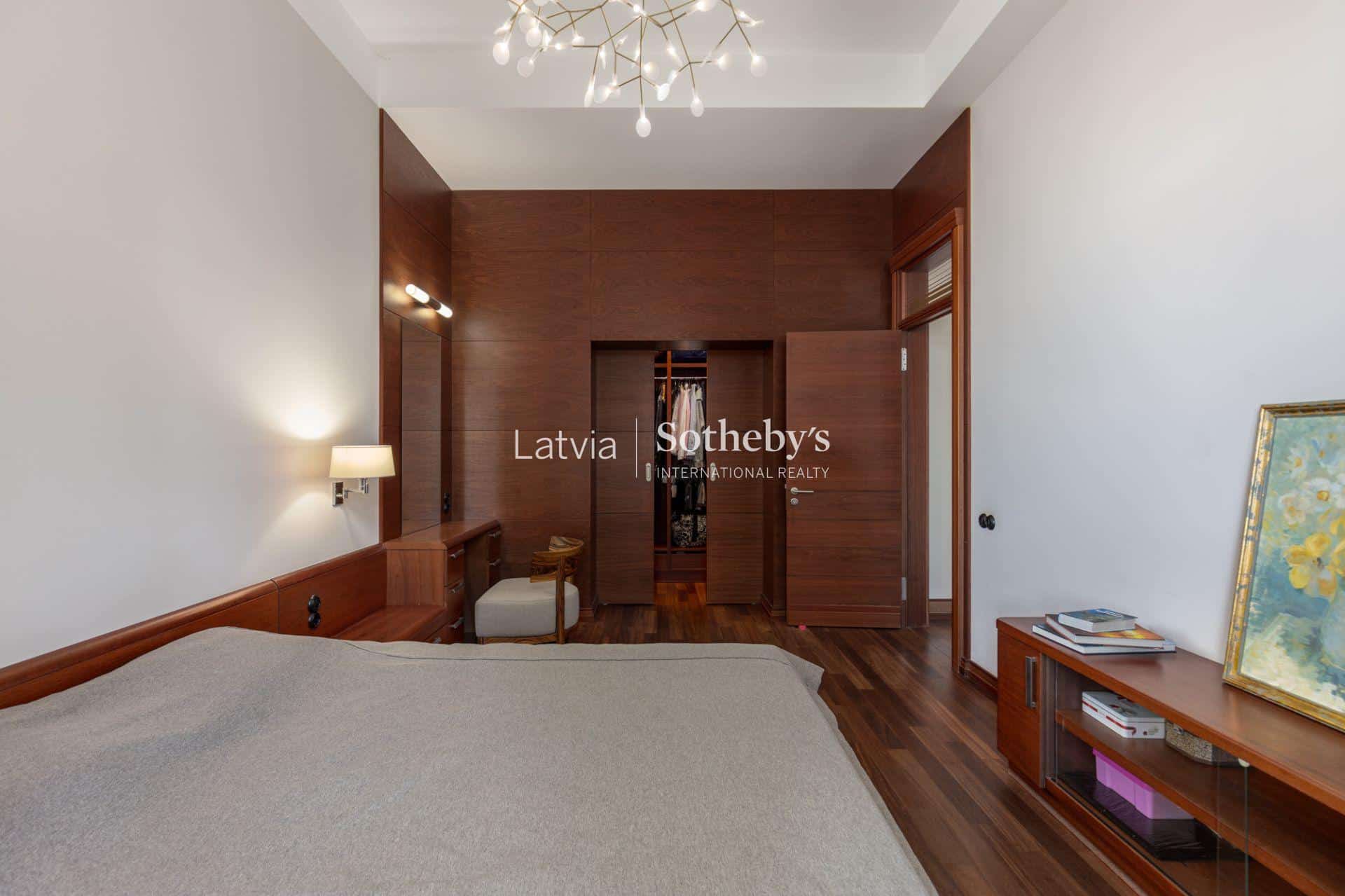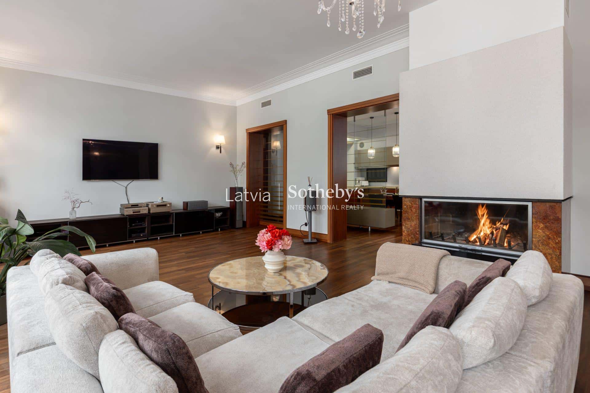 Plānojumā ietilpst liela plaša ieejas halle, kurā izvietoti iebūvejamie skapji virsdrēbēm un apaviem, pilnībā aprīkota virtuve, dzīvojamā istaba ar kamīnu, kabinets (vai guļamistaba), divas atsevišķas guļamistabas ar logiem, kas skatās uz klusu iekšpagalmu (galvenajai guļamistabai ir sava garderobe kā atsevišķa telpa), plaša vannasistaba ar logiem, vannu un dušu, viesu sanmezgls, kā arī tehniskā un veļas telpas. Dzīvokļa logi vērsti gan uz fasādi, gan uz iekšpagalmu. Dzīvoklim ir divas ieejas — centrālā un uz papildu kāpņu telpa, ar izeju uz pagalmu. Centrālā ieeja ir caur skaistu ieejas halli ēkas 1 stāvā. Šī elegantā senā ēka (anno 1910) ir pilnībā renovēta – tai veikta pārsegumu un komunikāciju nomaiņa, remontēts jumts, uzstādīts lifts un pati kāpņu telpa renovēta pēc vēsturiskajām skicēm. Mājā uzstādīta video novērošana. Īpašumam ir veikts novērtējums, kas pie iegādes derīgs finansējuma saņemšanai jebkurā kredītiestādē Latvijā.