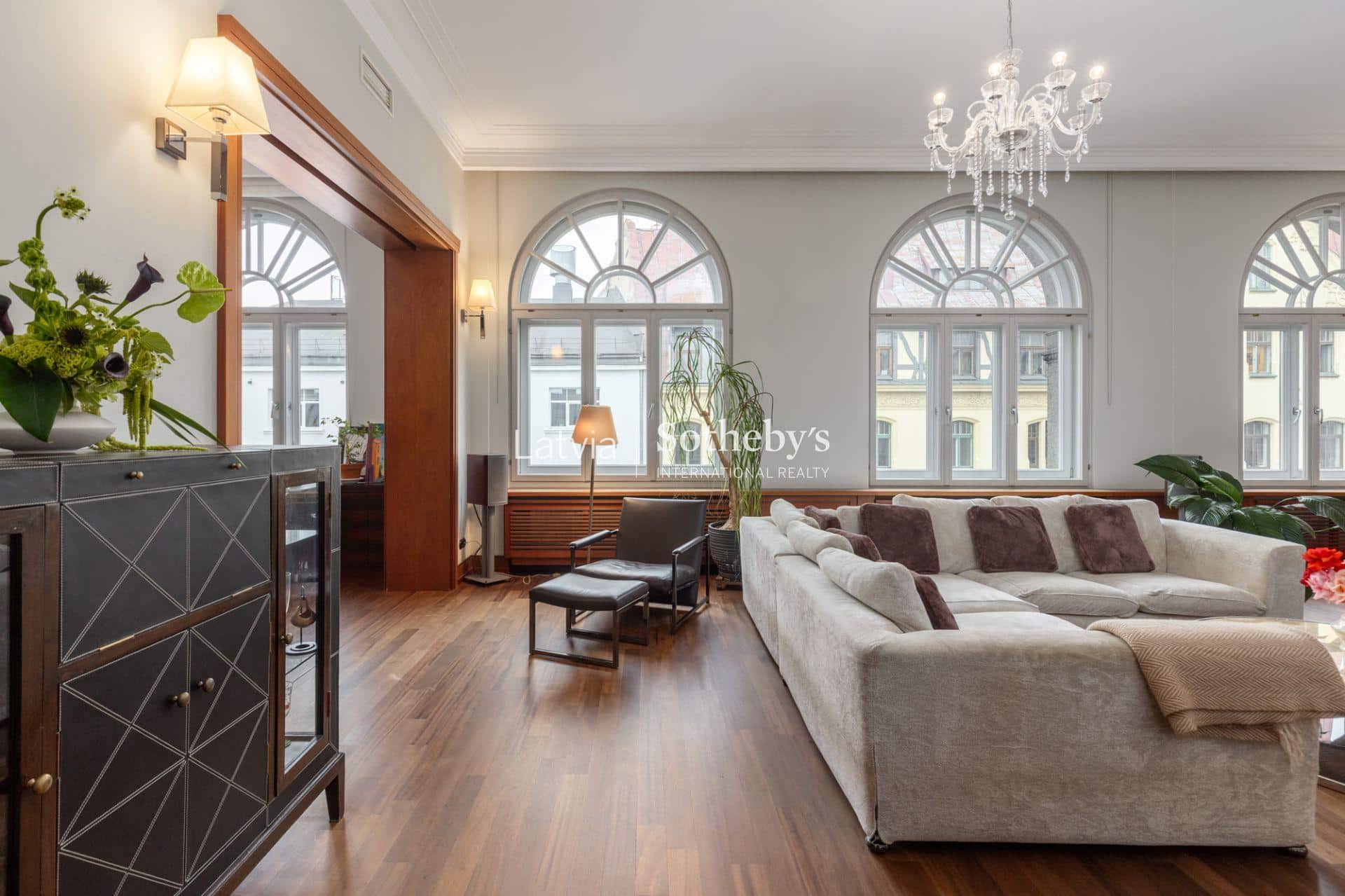 Piedāvājam iegādei izsmalcinātu un plašu dzīvokli prestižajā Jūgendstila namu rajonā, Strēlnieku ielā. Dzīvoklis ar kopējo platību 177 kv.m atrodas vienā no ēkas augšējiem stāviem. Panorāmas skatu uz Alberta ielu no skaistiem arkveida logiem papildina rīta saule, kas apgaismo fasādi un piešķir siltu un maigu gaismu dzīvokļa iekštelpās visas dienas garumā.