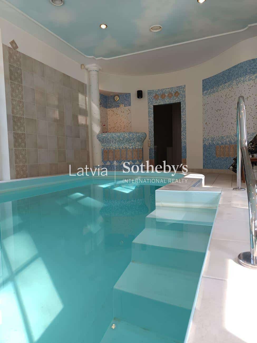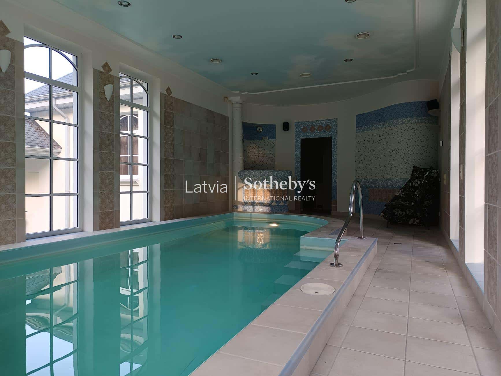 Elegantā māja atrodas 2. līnijā pie Baltezera, 4000 m2 lielā teritorija no divām pusēm robežojas ar skaistu priežu parku, uz kuru var nokļūt par speciāli izbūvētiem vārtiņiem. Labiekārtotajā teritorijā izveidoti divi dīķi, kur vienā tiek audzētas karpas, līņi un baltie amūri, savukārt otrais priecē ar skaistajām ūdensrozēm.