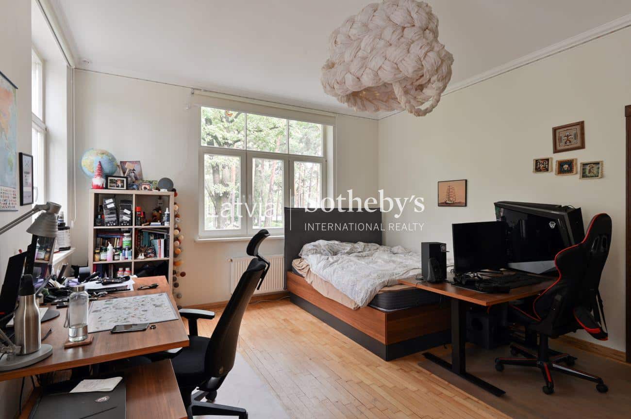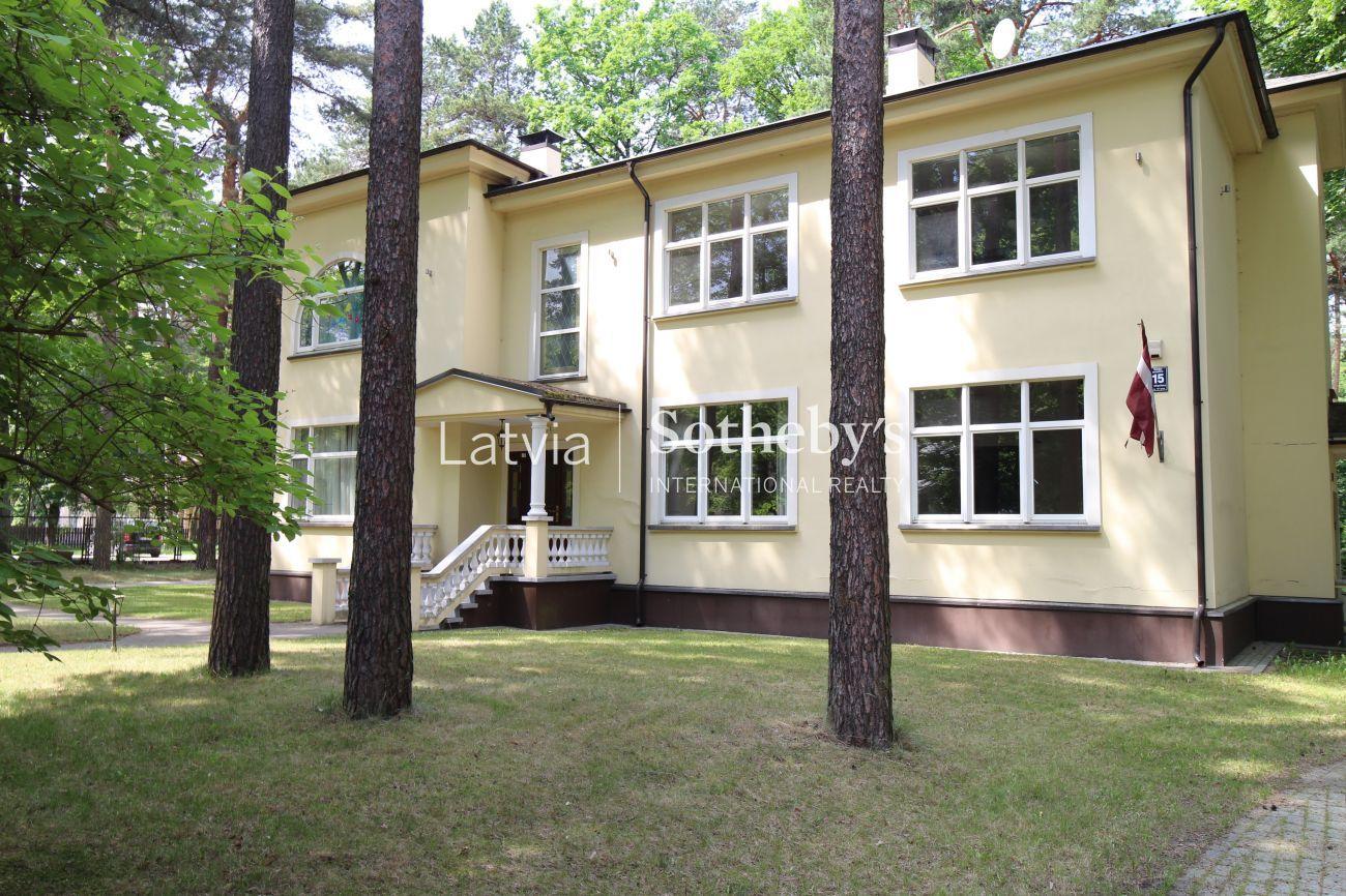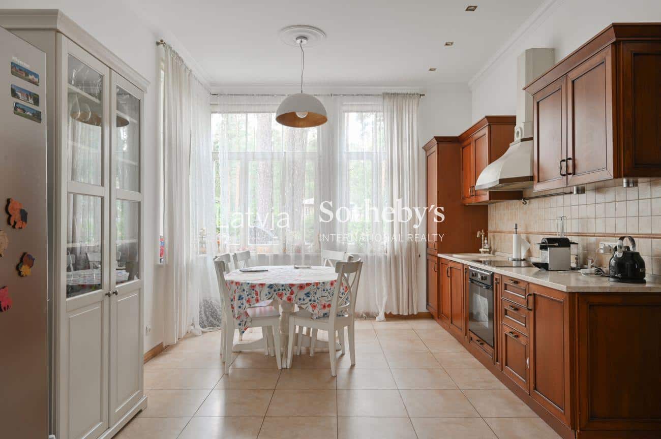 Īpašums izceļas ar izsmalcinātu retro stila interjeru, rūpīgi izvēlētiem apdares materiāliem un telpisku plašumu. Griestu augstums no 2,85 līdz 3,16 metriem rada viegluma un gaismas sajūtu, savukārt plašās terases ar skatu uz priežu mežu nodrošina ideālu vidi atpūtai, relaksācijai un privātumam.