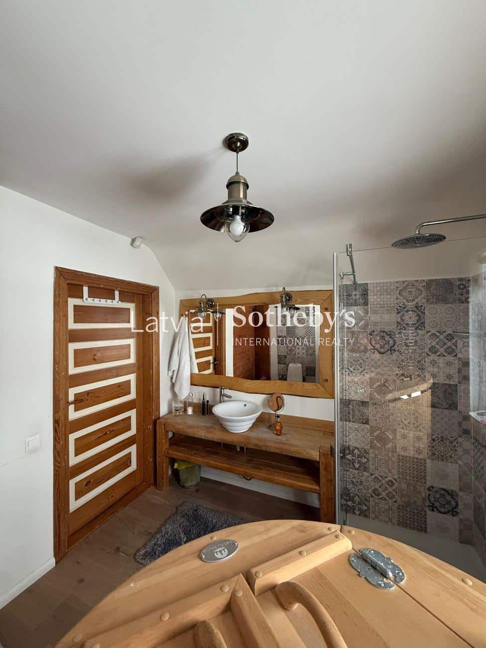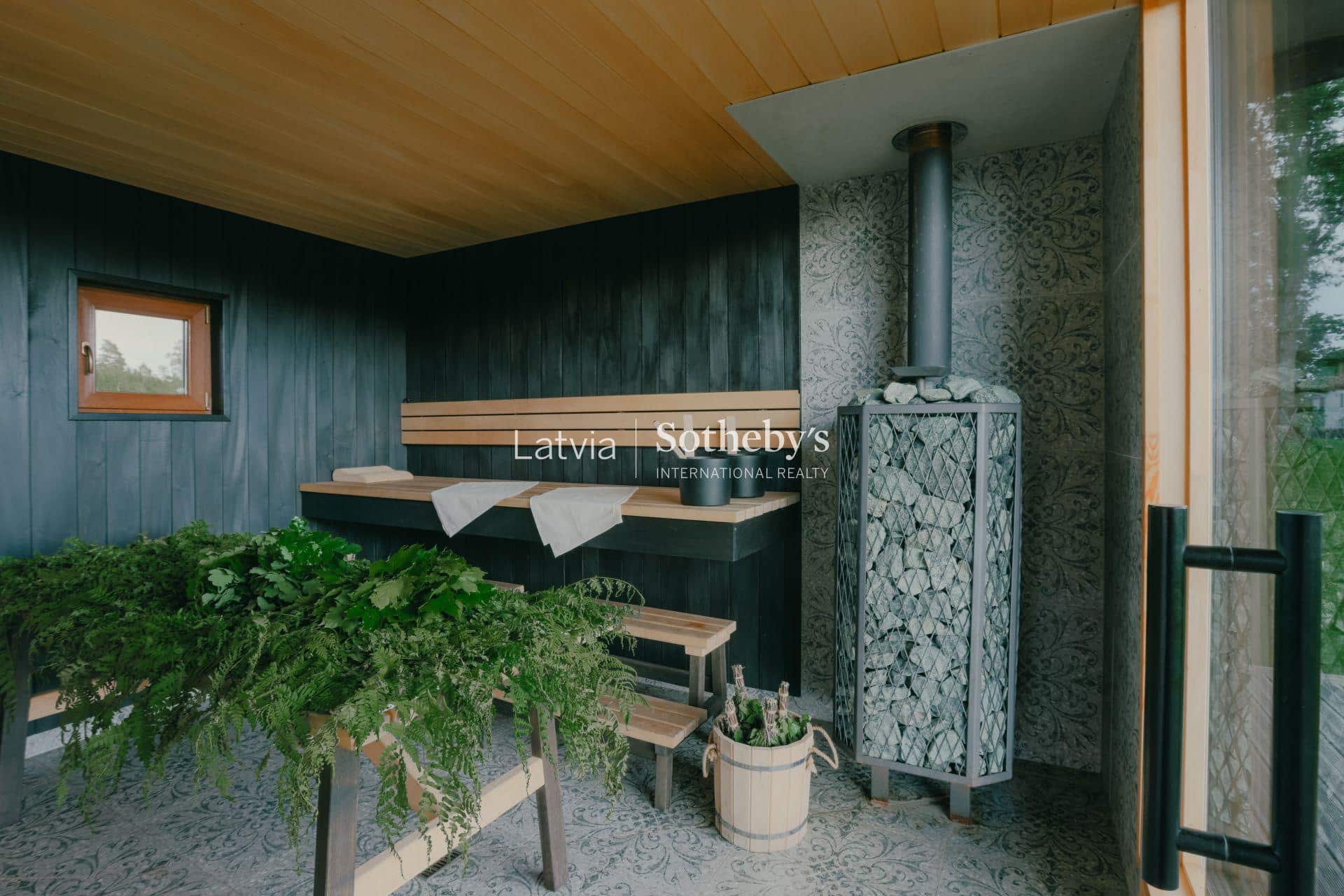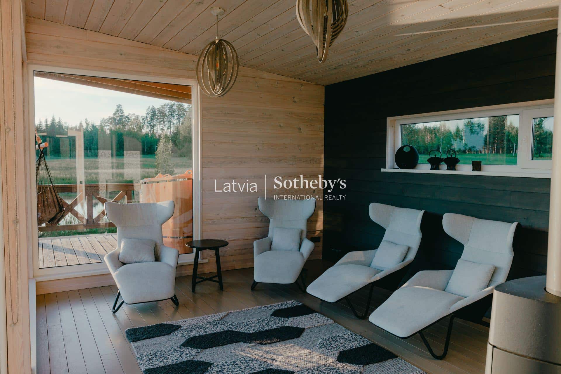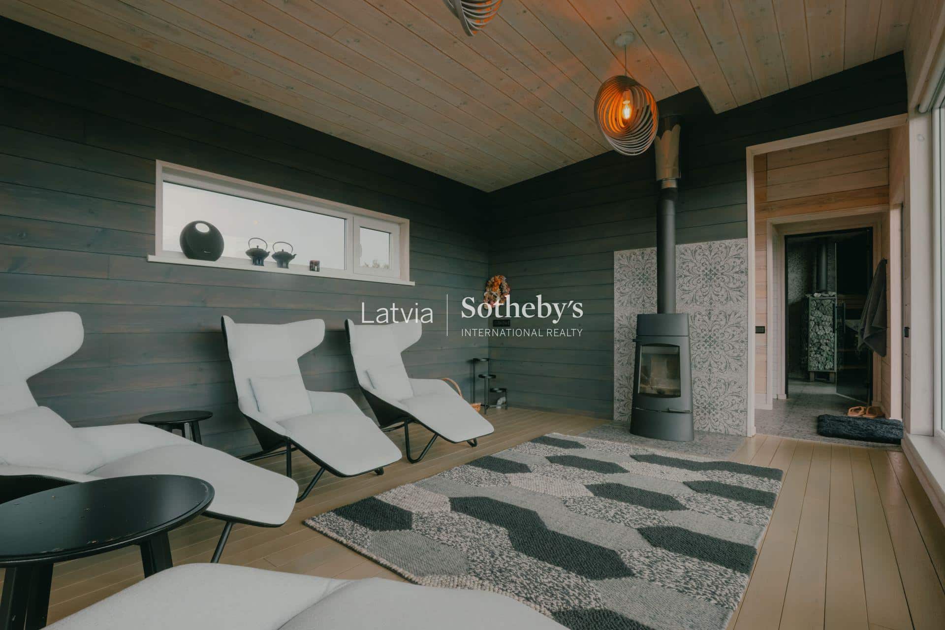 Īpašumā izveidota arī īpaša atpūtas zona ar pirti (80 m²). Plašā terase ar laipu ved uz dīķi, kur pēc pirts iespējams veldzēties ūdenī. Pirts telpās ierīkota ciedra koka fito sauna, kas rada īpašu aromātu un relaksācijas sajūtu.