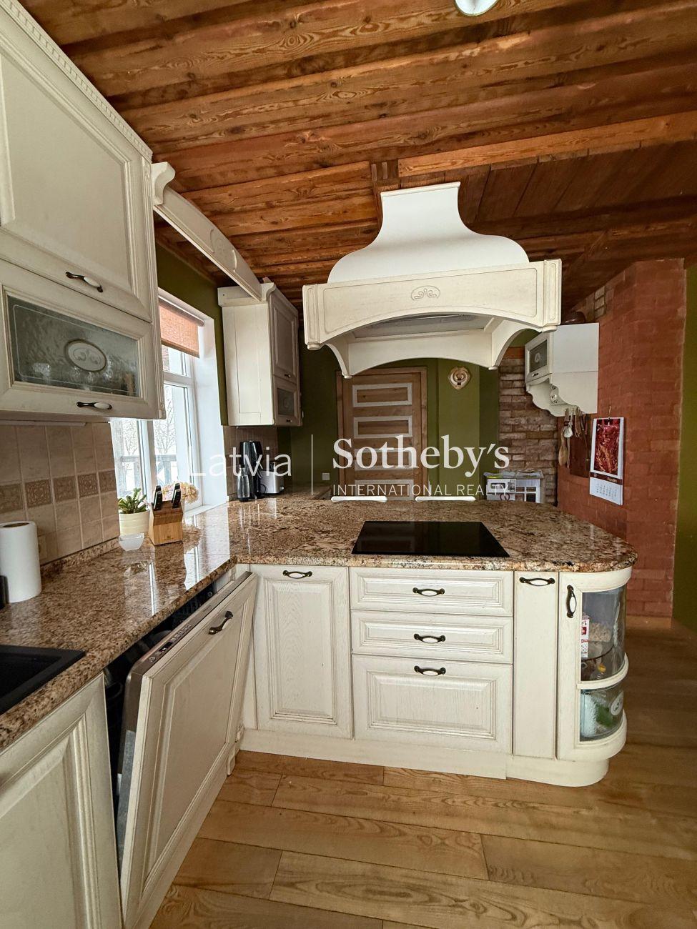 Īpašuma centrā atrodas plaša divstāvu dzīvojamā māja (210 m²), kas veidota kā ērta un funkcionāla ģimenes rezidence. Pirmajā stāvā izvietota dzīvojamā istaba, ēdamistaba un virtuve, kas kopā rada siltu un mājīgu kopā būšanas telpu, kā arī garderobe un sanitārā telpa. Otrajā stāvā atrodas četras guļamistabas, divas vannas istabas un veļas telpa. No mājas paveras skats uz sakopto teritoriju, bet terase ar vīnogulājiem vasarā kļūst par īpašu vietu rīta kafijai vai mierīgiem vakariem.