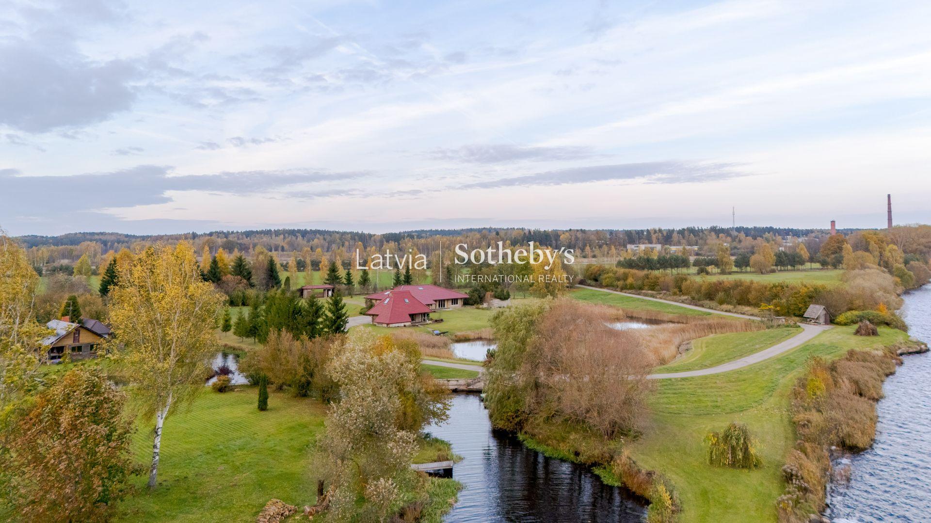 Teritorijā ierīkots ainavisks dīķis un plaša piekļuve Daugavas krastam, kas ļauj baudīt ūdens tuvumu visa gada garumā. Īpašums piemērots gan ekskluzīvas privātmājas, gan reprezentatīvas rezidences izveidei, nodrošinot pilnīgu izolētību un vienlaikus ērtu piekļuvi Rīgai – tikai 30 minūšu brauciens.