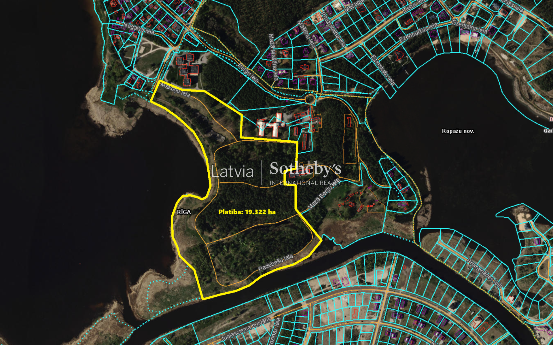 Berģos, tiek piedāvāta 19,32 ha attīstības teritorija ar apstiprinātu detālplānojumu Rīgas pilsētas robežās. Īpašumu raksturo izteikts reljefs, plašs meža masīvs un gara krastmala gar Juglas ezeru un Juglas upi, kas ļauj veidot dzīvojamo vidi ar izteiktu “dabas kūrorta” sajūtu ikdienā. Sasniedzamība līdz Rīgas centram ir aptuveni ~15 km (pa Brīvības ielu) vai ~23 km (pa Biķernieku ielu), nodrošinot līdzsvaru starp privātumu un pilsētas infrastruktūras tuvumu.