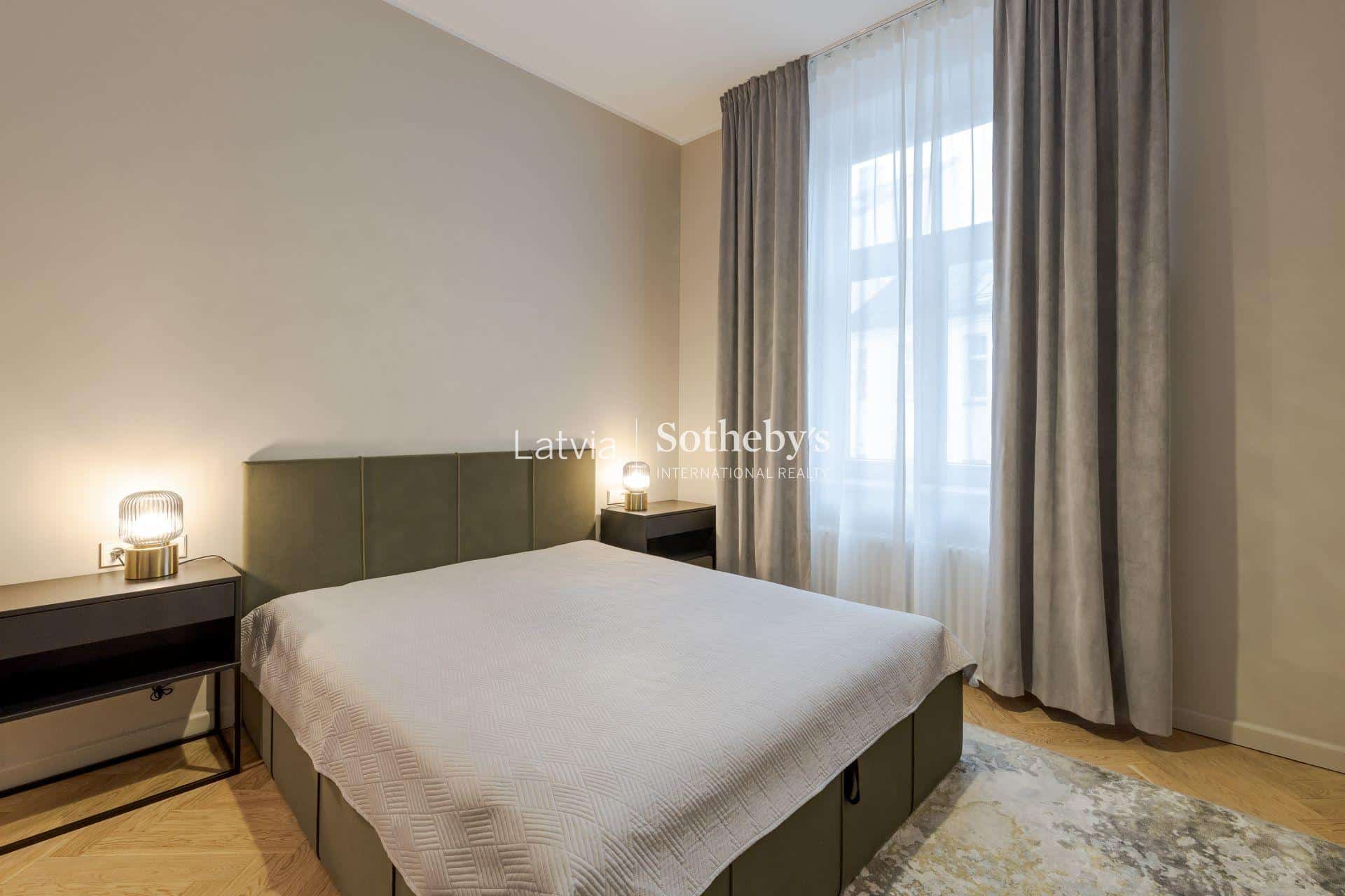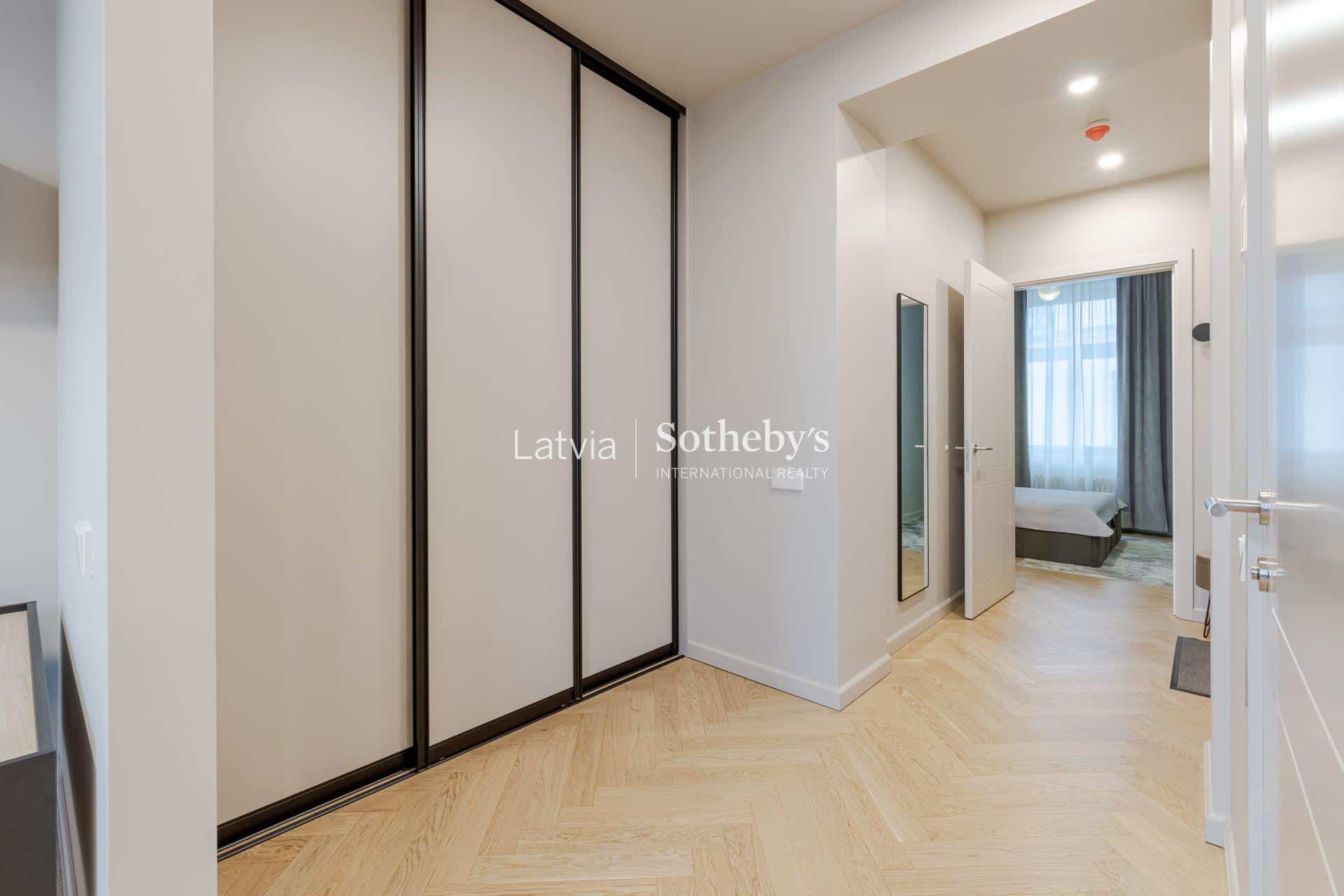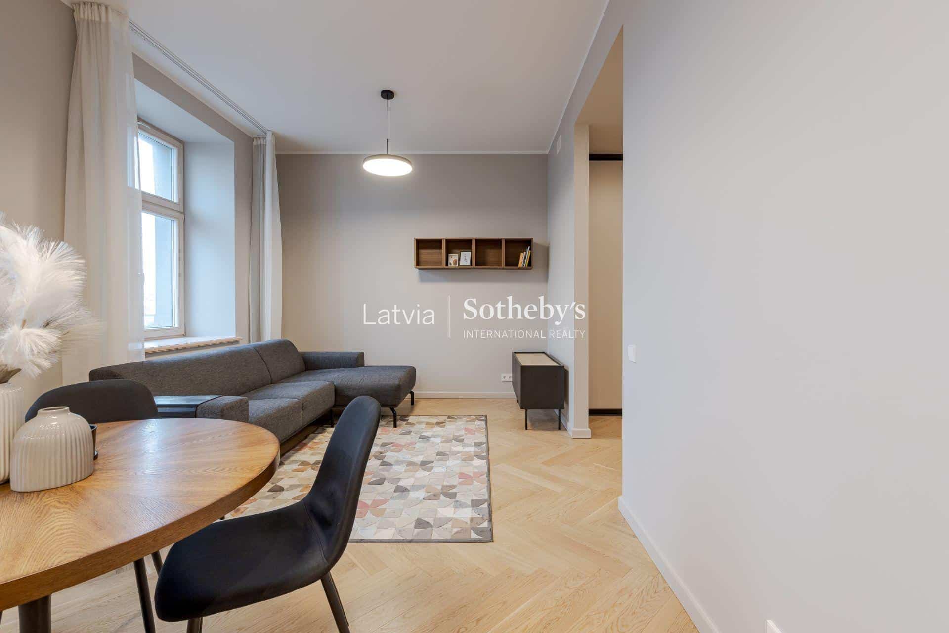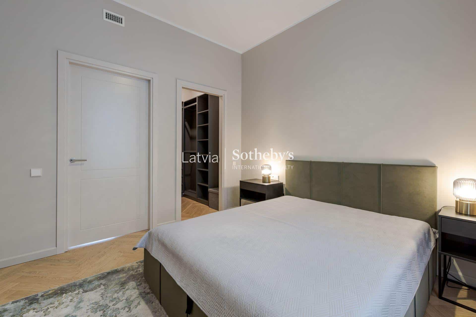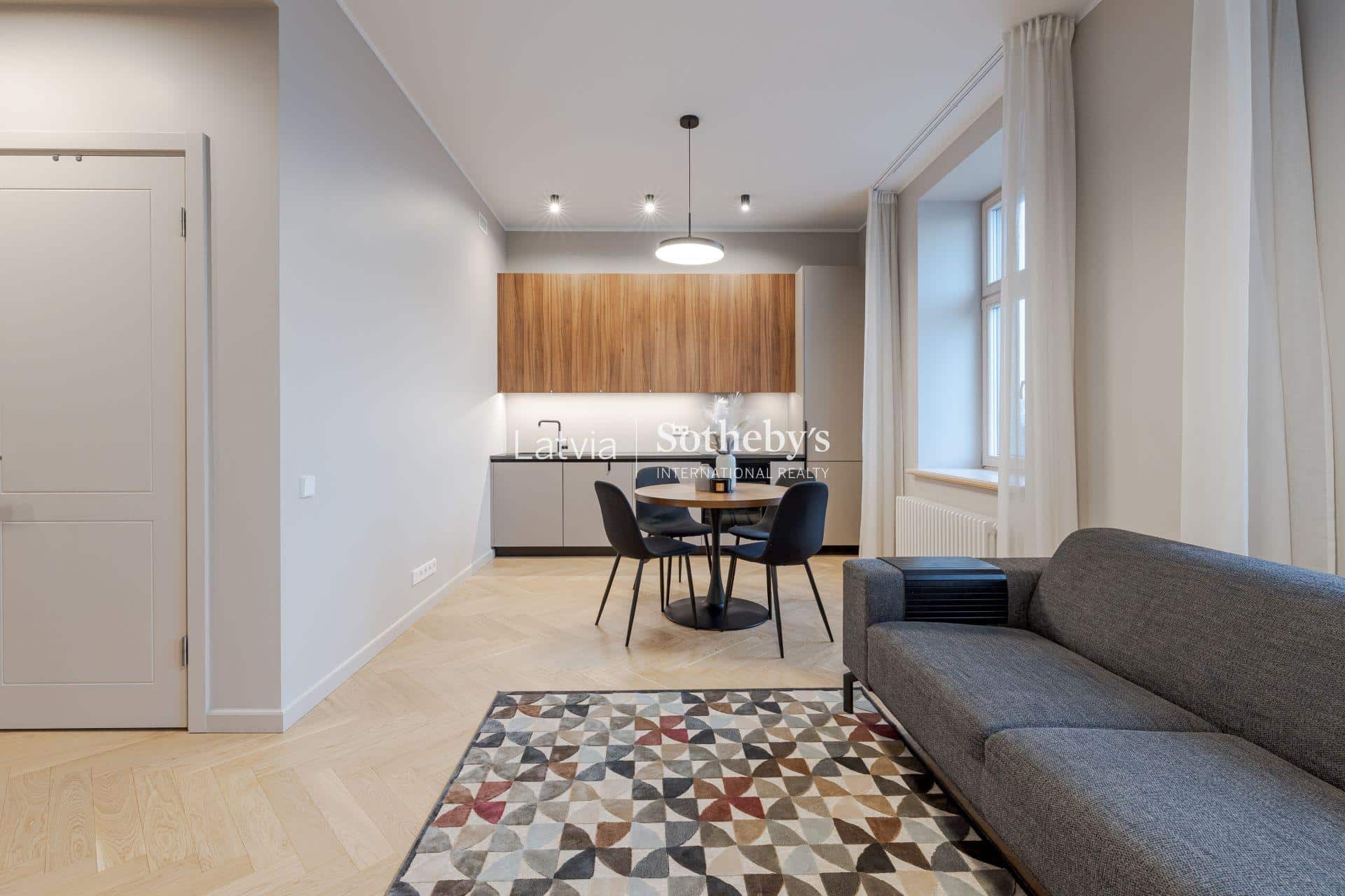 Квартира расположена в ухоженном, отреставрированном доме с безопасным входом и приятным соседством. Просторная гостиная объединена с современной кухонной зоной, что создает удобное и функциональное жилое пространство. Отдельная спальня оборудована гардеробной комнатой, обеспечивающей удобное хранение вещей.