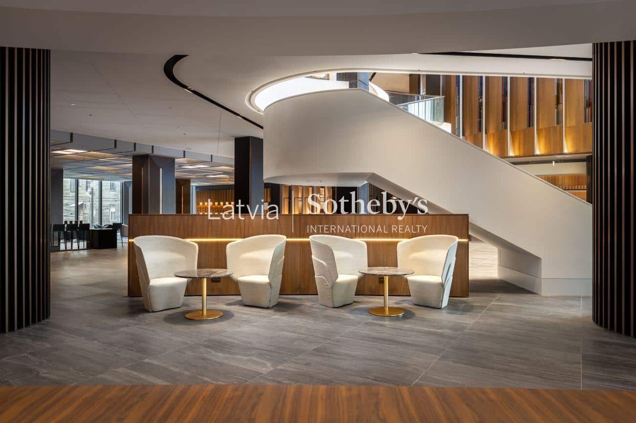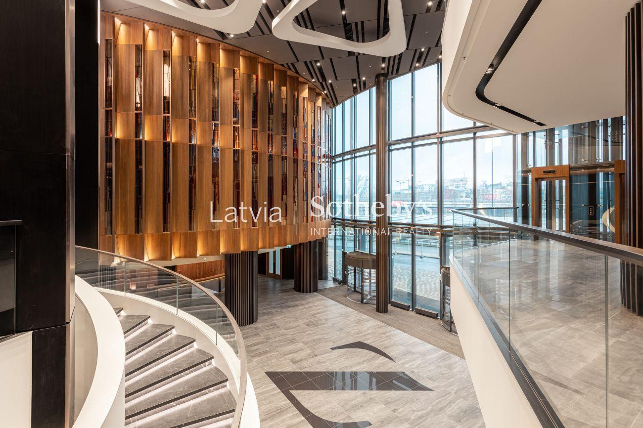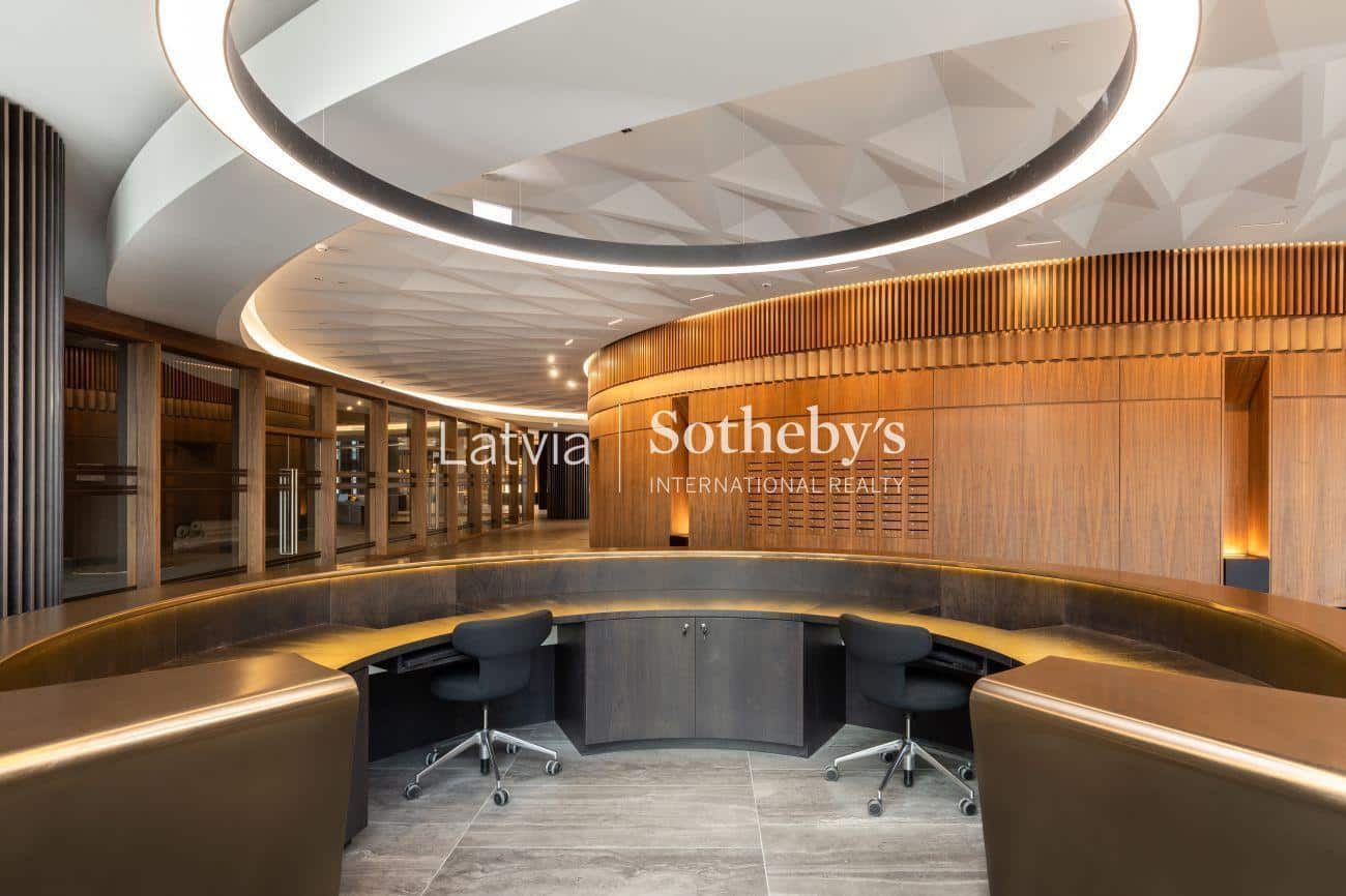 Офисные помещения площадью 835.1 квадратных метров расположены на верхнем офисной башни. Все офисы оснащены отличной звукоизоляцией и окнами от пола до потолка, предлагающими живописный вид на Даугаву, Старую Ригу, Агенскалнс и остальную часть города.