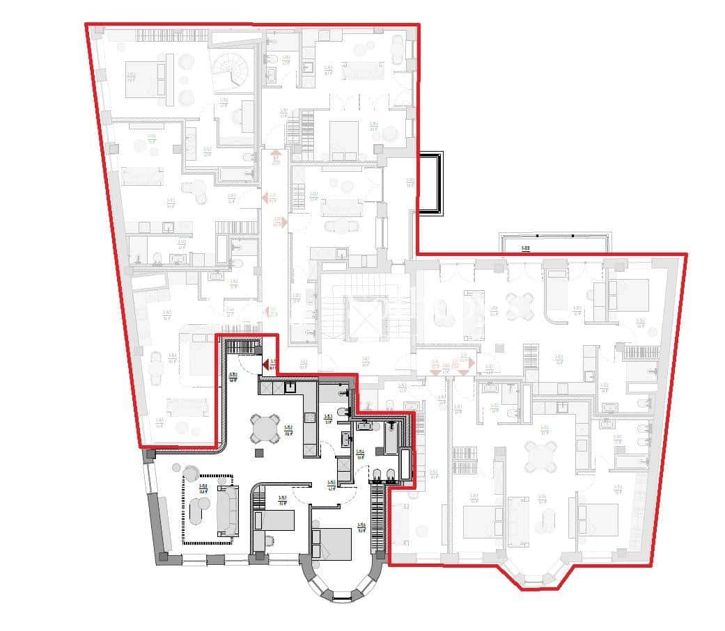 Квартира расположена на 3-м этаже 7-этажного дома. Общая площадь составляет около 86.9 м² и включает гостиную с красивым видом на улицу Дзирнаву, отдельную кухонную зону, главную спальню, расположенную в эркере дома, с индивидуальной ванной комнатой, дополнительный санузел и прихожую.